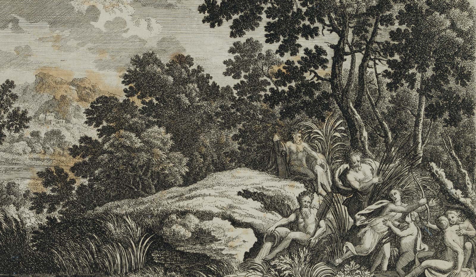 Johanna Sibylla Küsel (around 1650 Augsburg – 1717 ibid.), Heroic Landscape with Pan and Syrinx, 18th century, Copper engraving