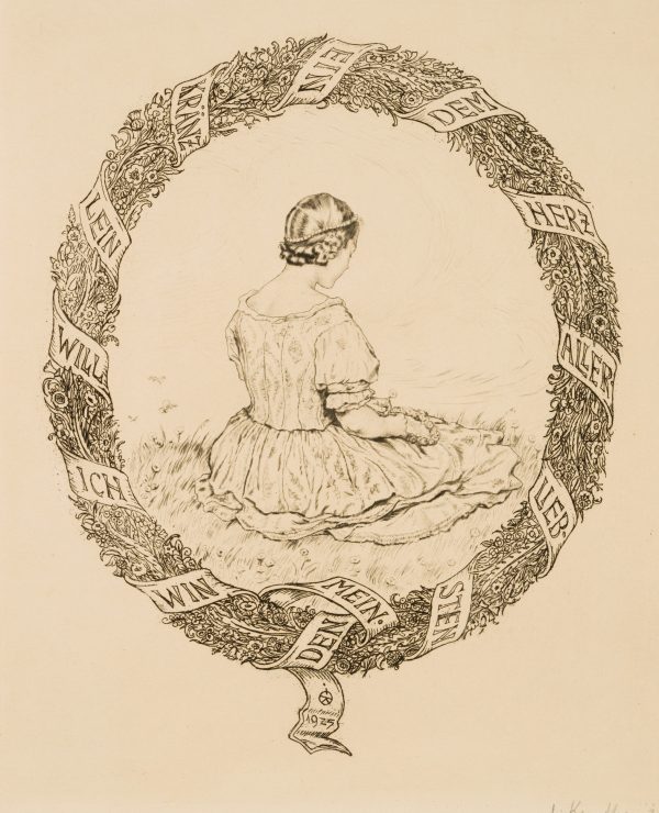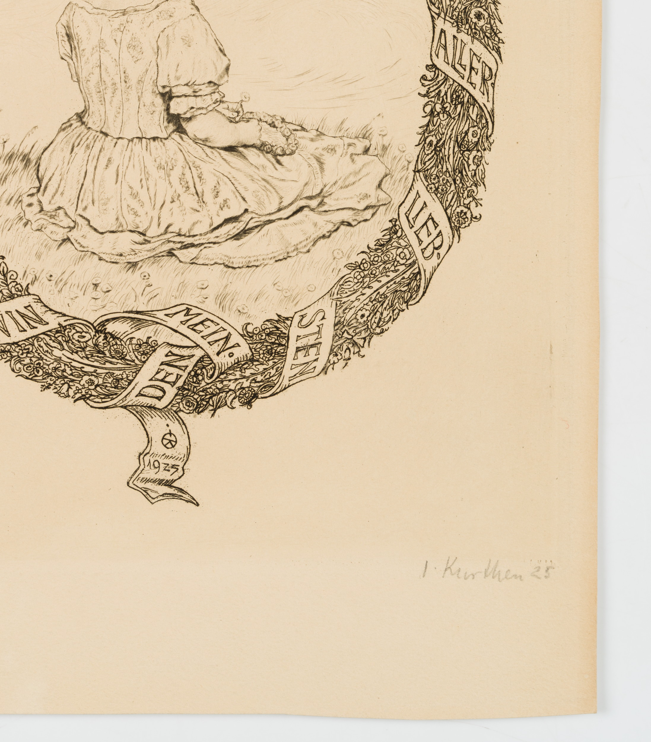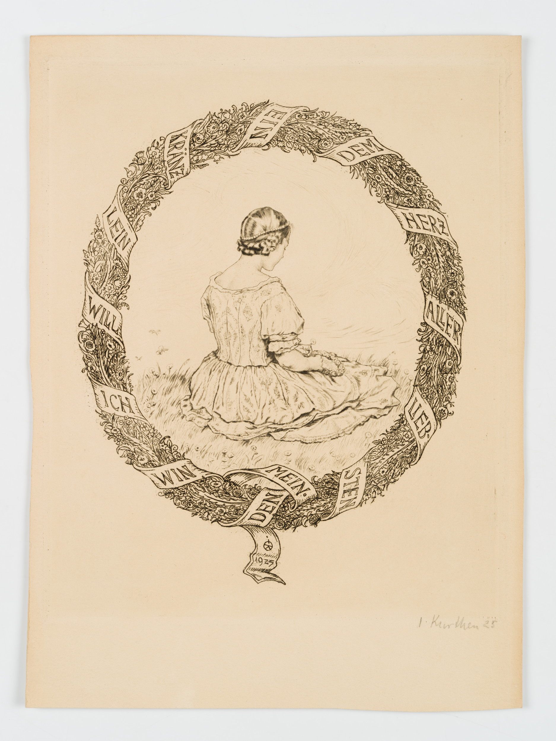Joseph Kurthen (born 1892 ), Girl wreathing a wreath in a wreathed frame, 1925, Etching