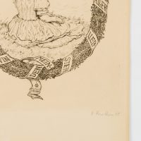 Joseph Kurthen (*1892 ), Mädchen im bekränzten Rahmen einen Kranz winden, 1925, Radierung