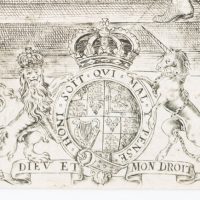 Mittig im unteren Bildbereich ist das Wappen des Vereinigten Königreichs von Großbritannien und Nordirland dargestellt, es ist das Wappen von Königin Elisabeth II. und Symbol der königlichen Herrschaft; im Spruchband bezeichnet mit „Dieu et mon droit“ (französisch: Gott und mein Recht), dem Wahlspruch der britischen Monarchen. - Datierung: