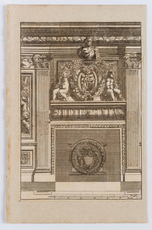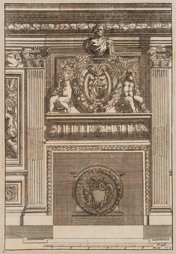 - Description: Probably the first edition of the series Nouveaux dessins de chemines l’italienne, which was produced between 1640 and 1682. The series includes designs and patterns for ornate fireplace facings with figural attachments and elaborate decoration.