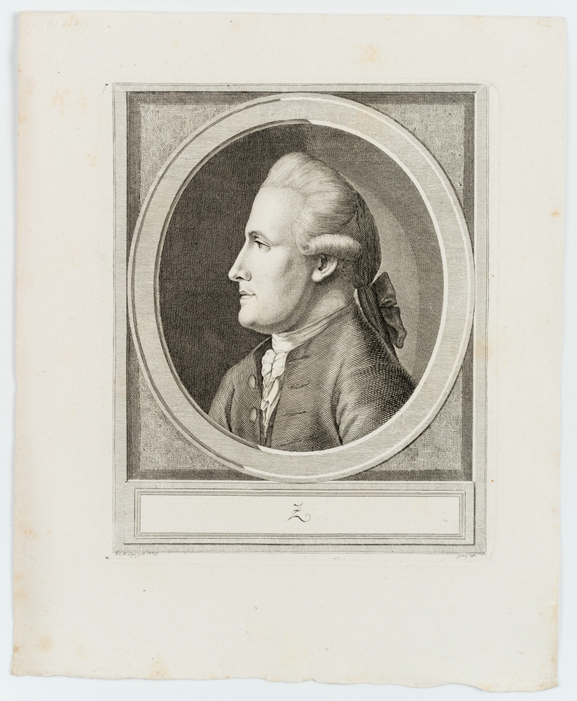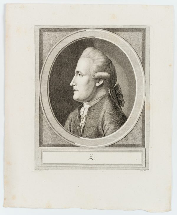 The print is from Johann Caspar Lavater’s Physiognomische Fragmente, zur Beförderung der Menschenkenntniß und Menschenliebe. Between 1775 and 1778, he published the multi-volume work in which human characters are explained on the basis of their physiognomy. Well-known artists such as Daniel Chodowiecki, Johann Rudolph Schellenberg or Johann Heinrich Lips provided models for his collection of physiognomics, which contains numerous portraits of well-known and anonymous people.