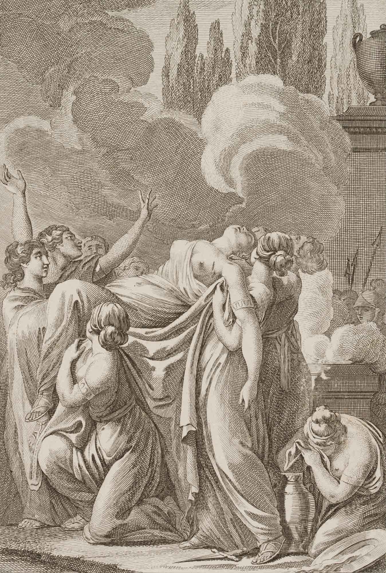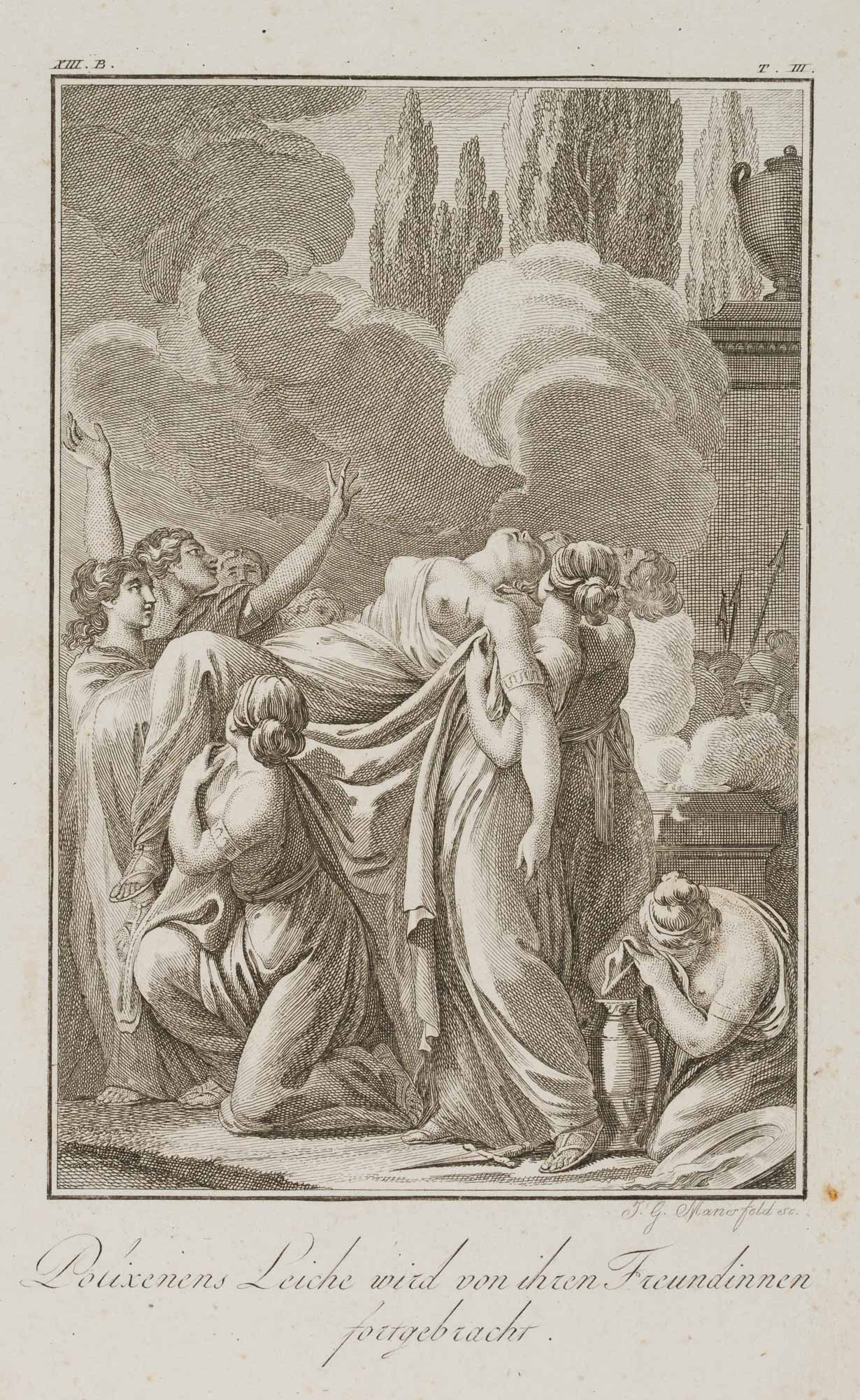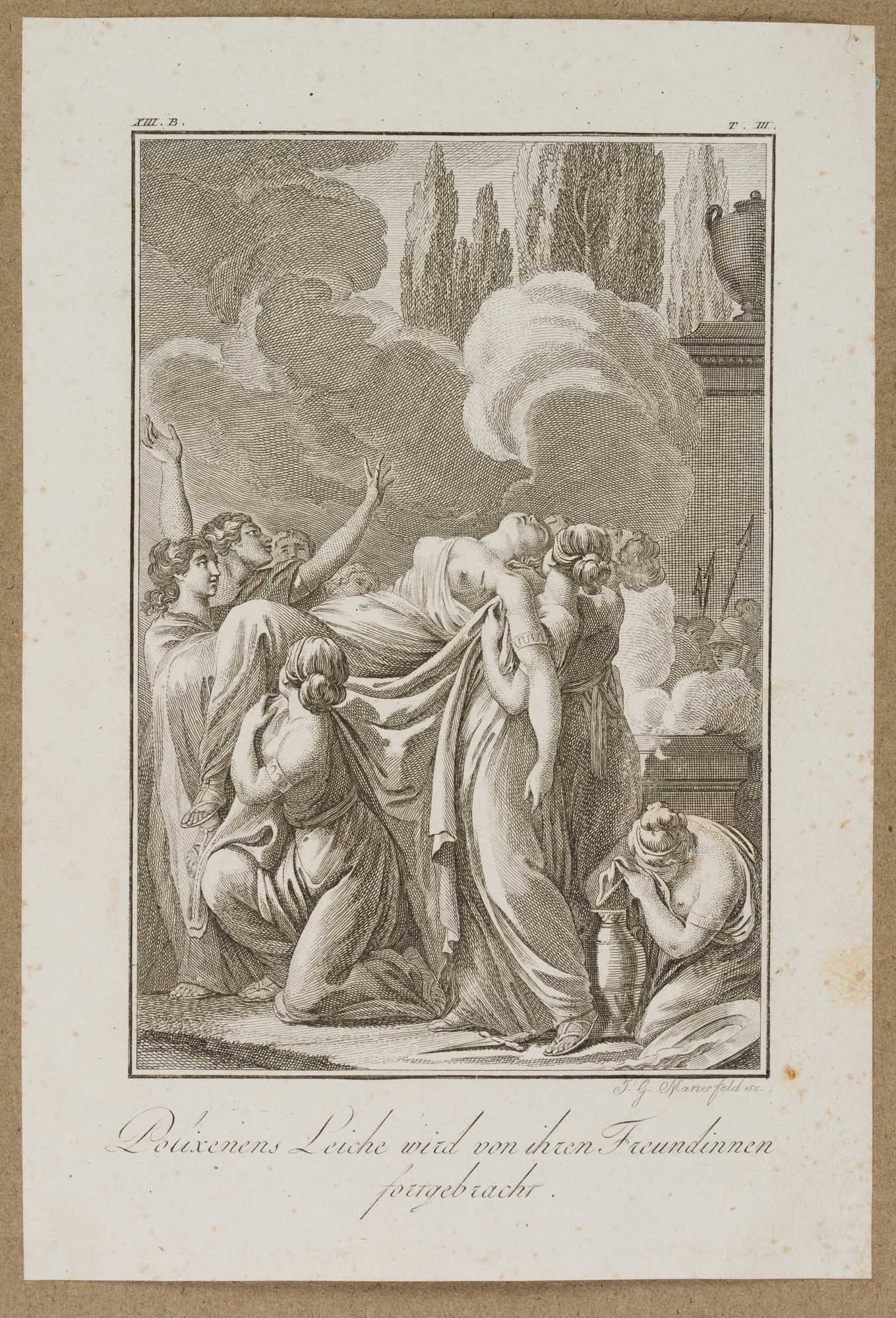 J.G. Manerfeld (19. Jahrhundert), Polyxena wird von ihren Freundinnen fortgebracht, um 1800, Radierung