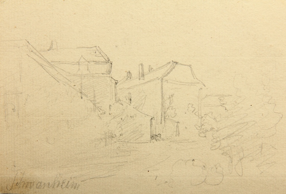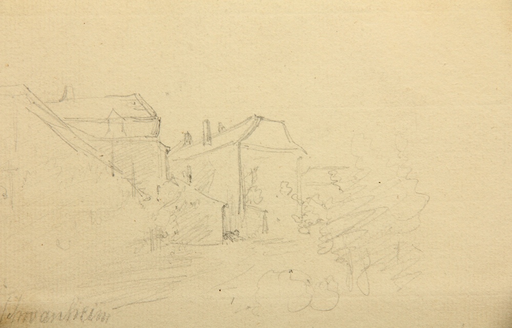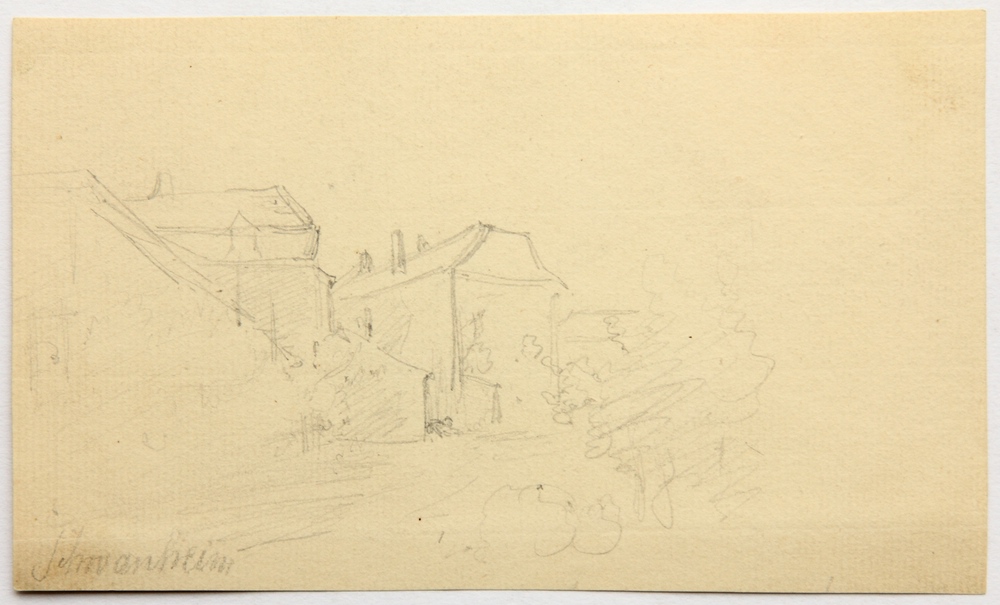 - Inscription: Inscribed “Schwanheim” on the lower left. On the reverse side is a cut-out depiction of trees.