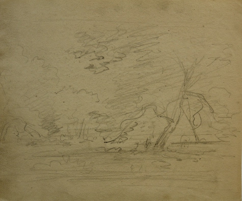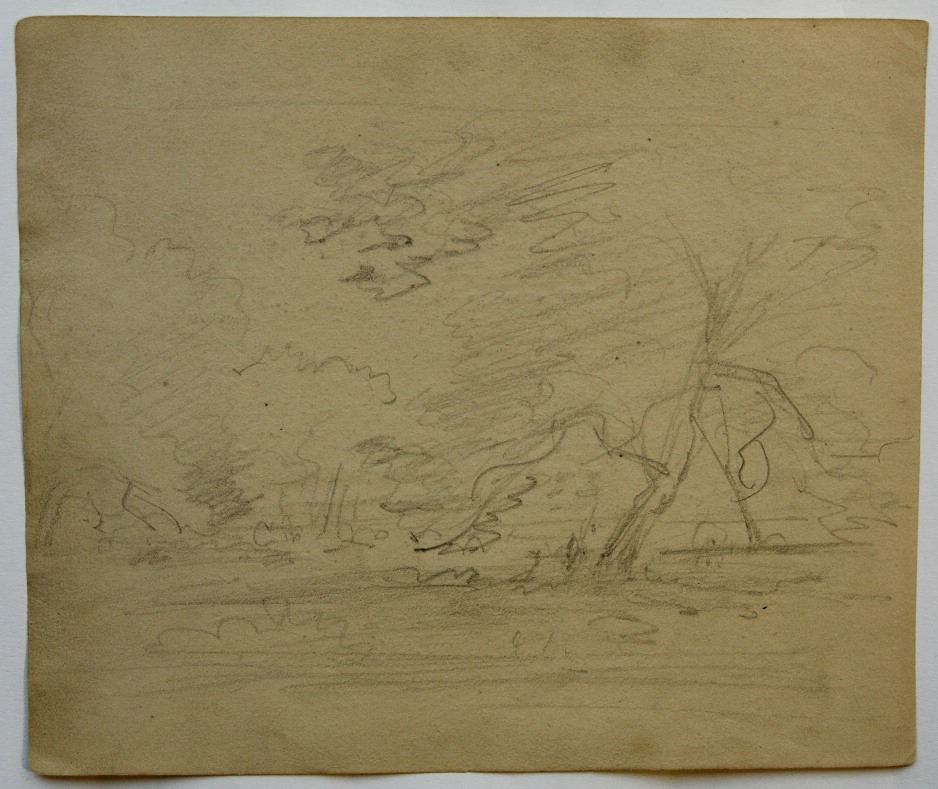 Jakob Maurer (1826 Obereschbach – 1887 Kronberg), Skizzenhafte Naturdarstellung, Parklandschaft, 19. Jahrhundert, Bleistift