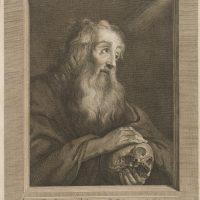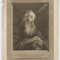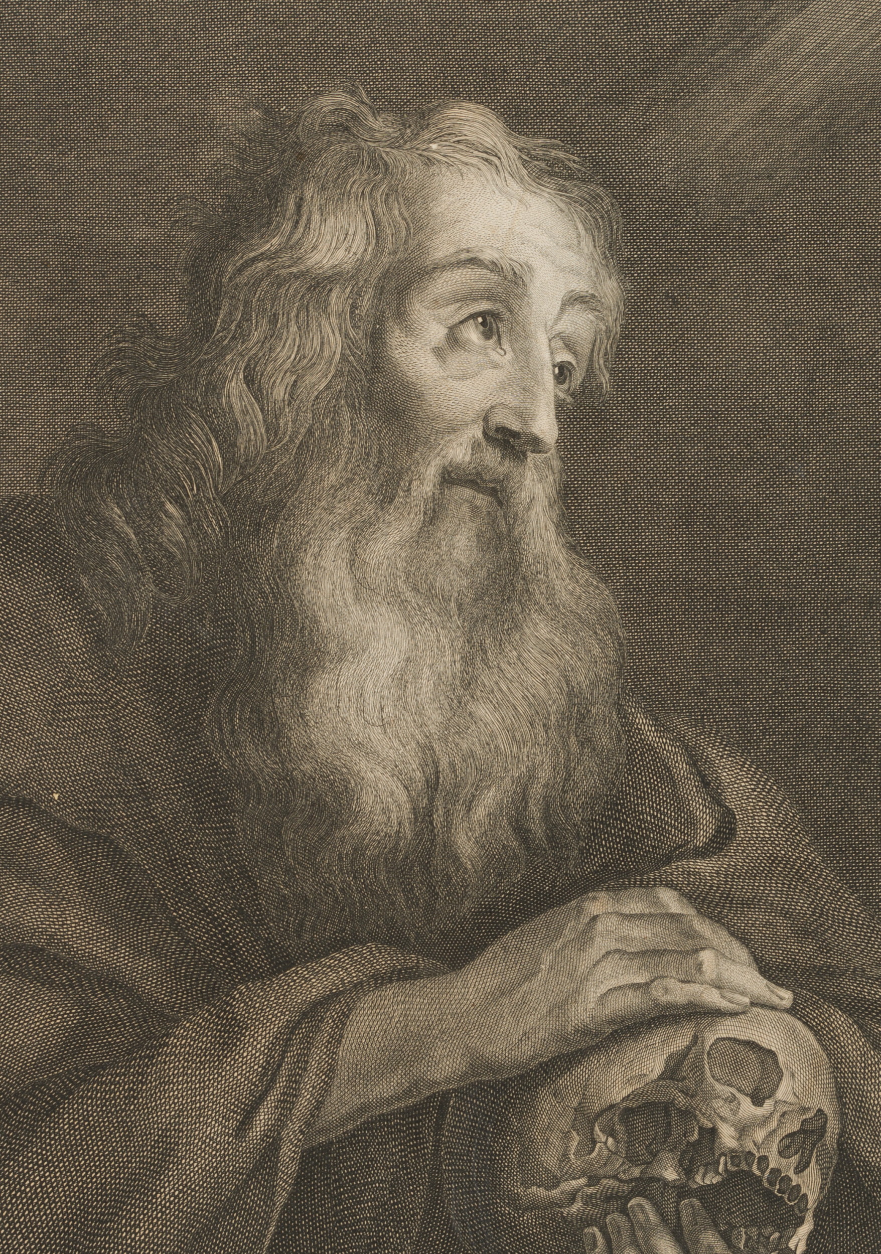 - Description: Depiction of Saint Jerome with a skull, looking into falling light.