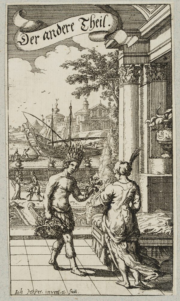 - Bezeichnung: Unten links im Druck signiert: “Joh Meyer invent et fecit”. Oben links im Druck bezeichnet: “Der andere Theil”.