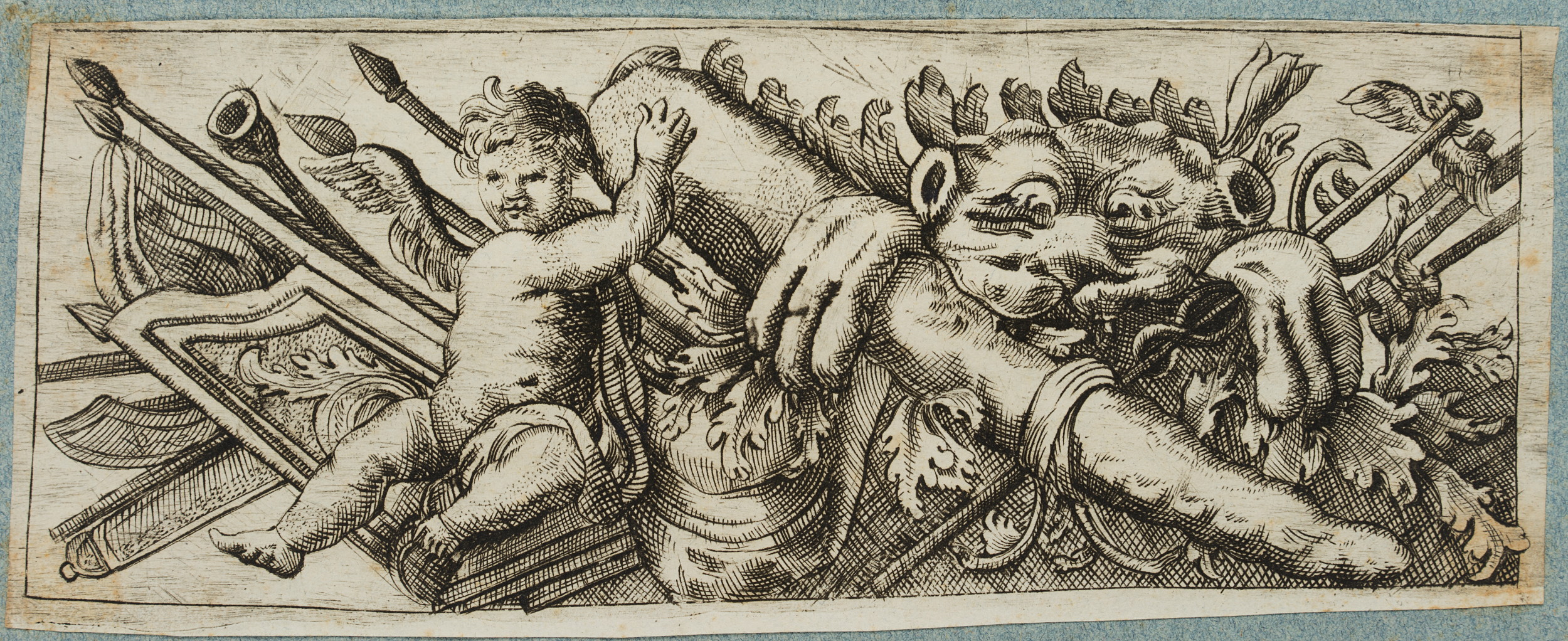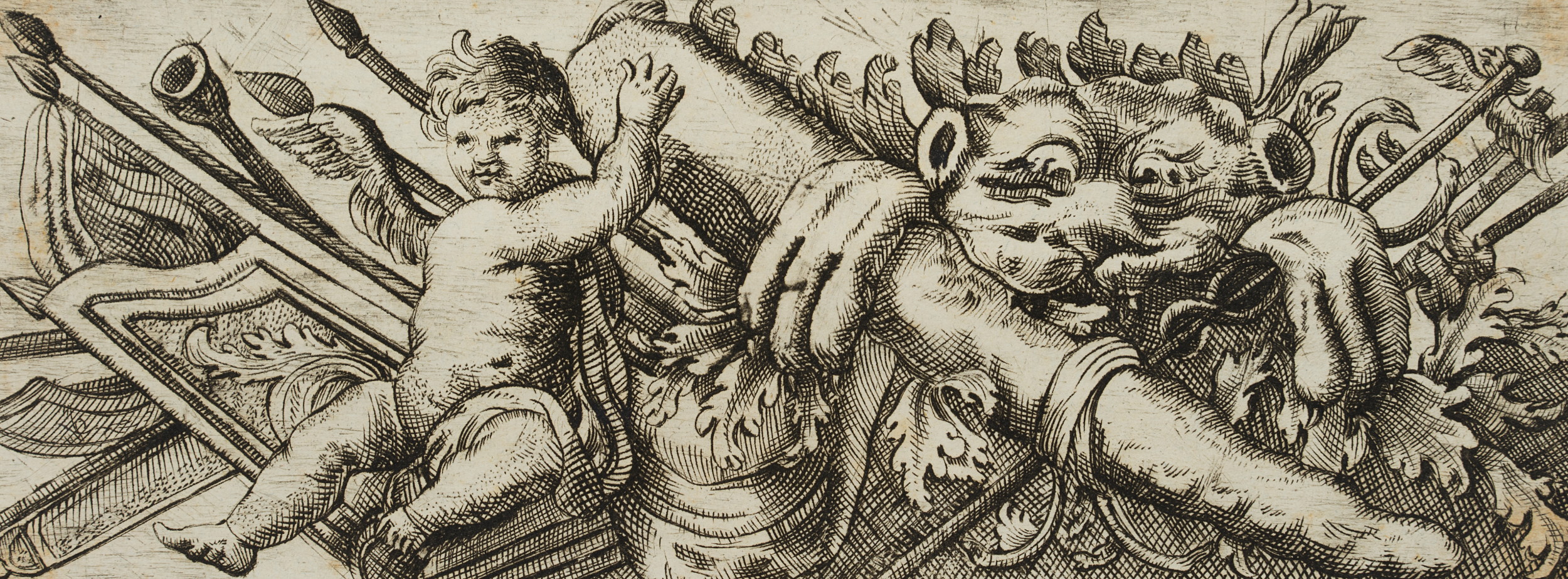 J. MEYER (1655-1712), Entwurf eines Frieses, Waffen des Herakles, Rad. Barock