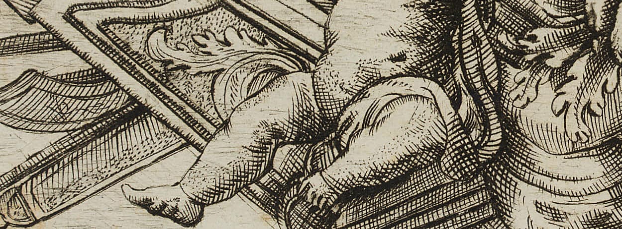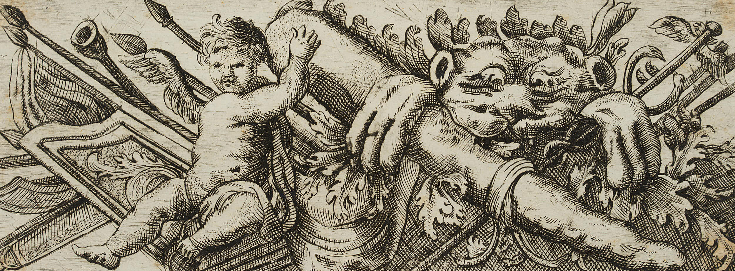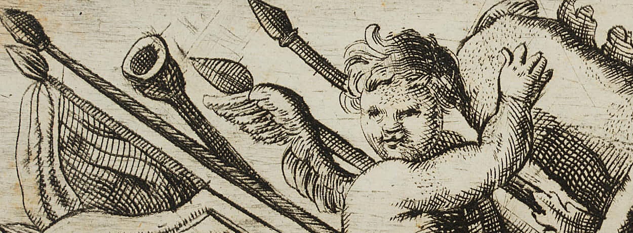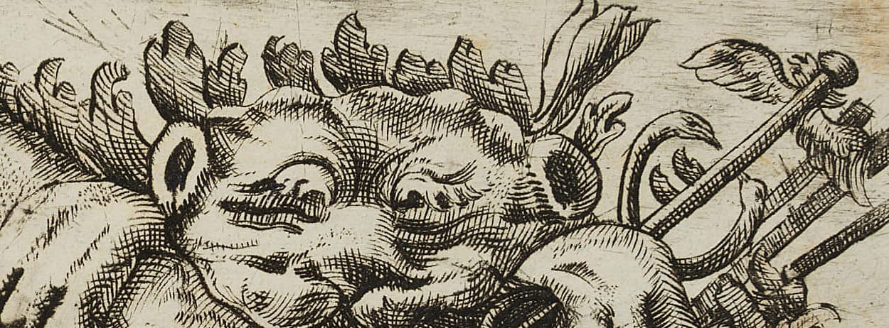 • Beschreibung: Entwurf eines dekorativen Frieses mit Darstellung kriegerischer Trophäen, darunter Keule und Fell des Nemeischen Löwen als Attribute des Herakles/Herkules sowie der Stab des Merkur/Hermes.