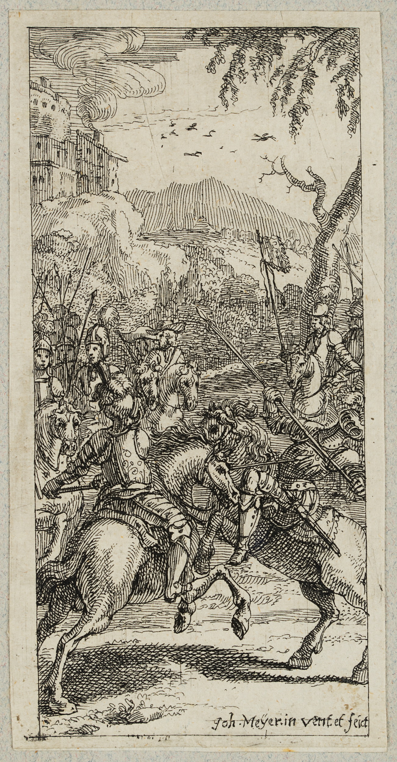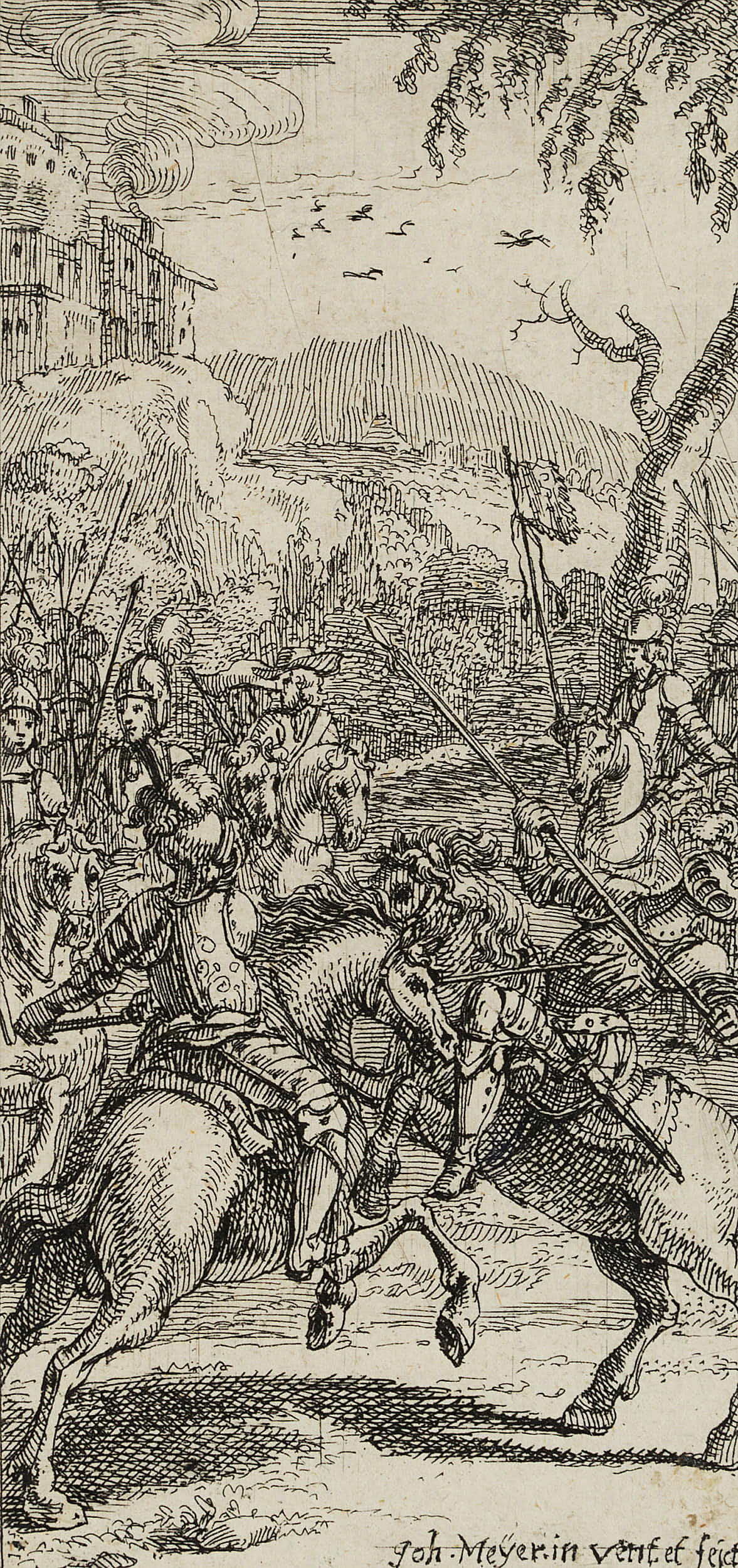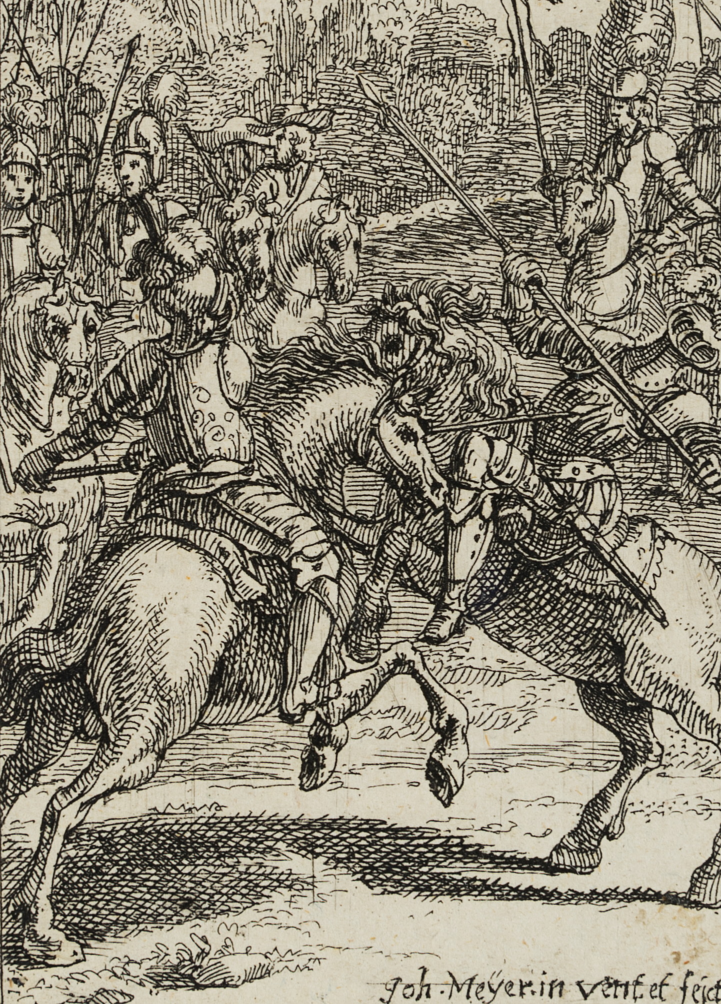Johannes Meyer d. J. (1655 Zürich – 1712 ebd.), Historische Reiterschlacht mit Lanzenreitern, , Radierung