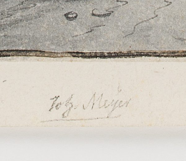 - Technik: Lavierte Federzeichnung auf Papier, aufgezogen auf Papier
