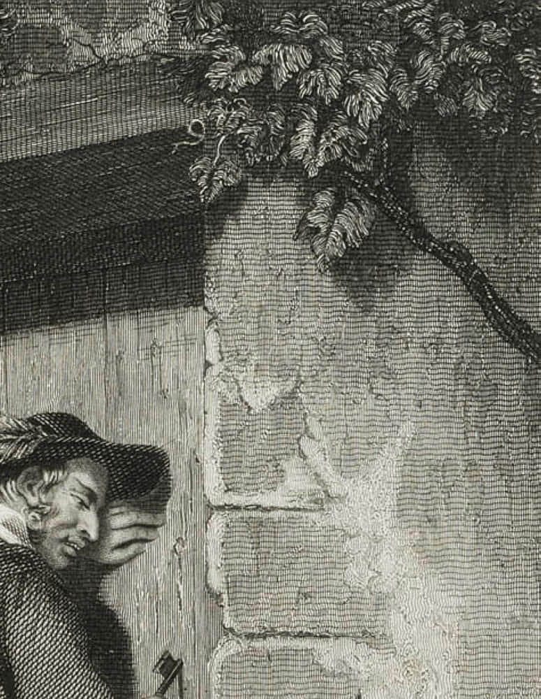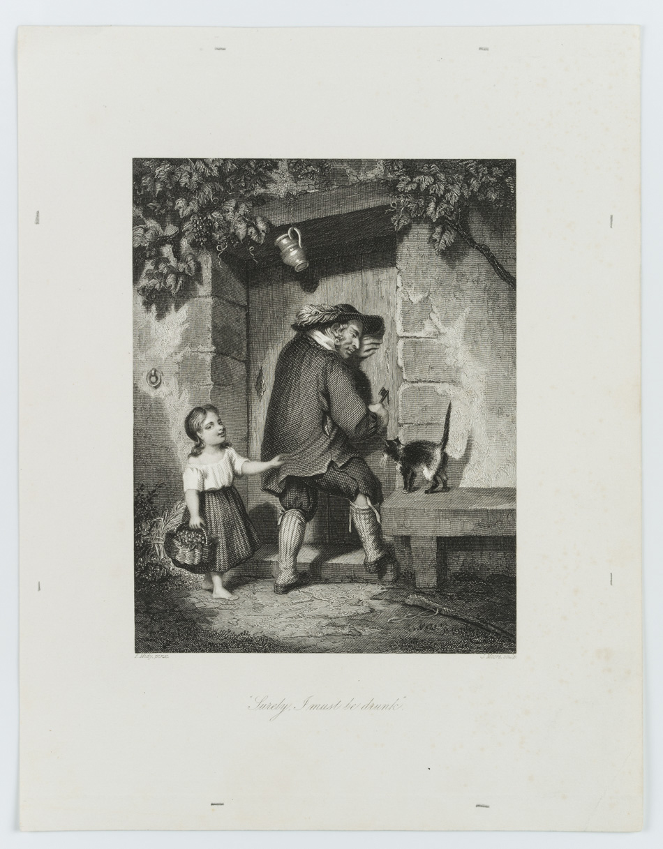 J. Moore (19th century), Drunk opening a door, 19th century, Steel engraving