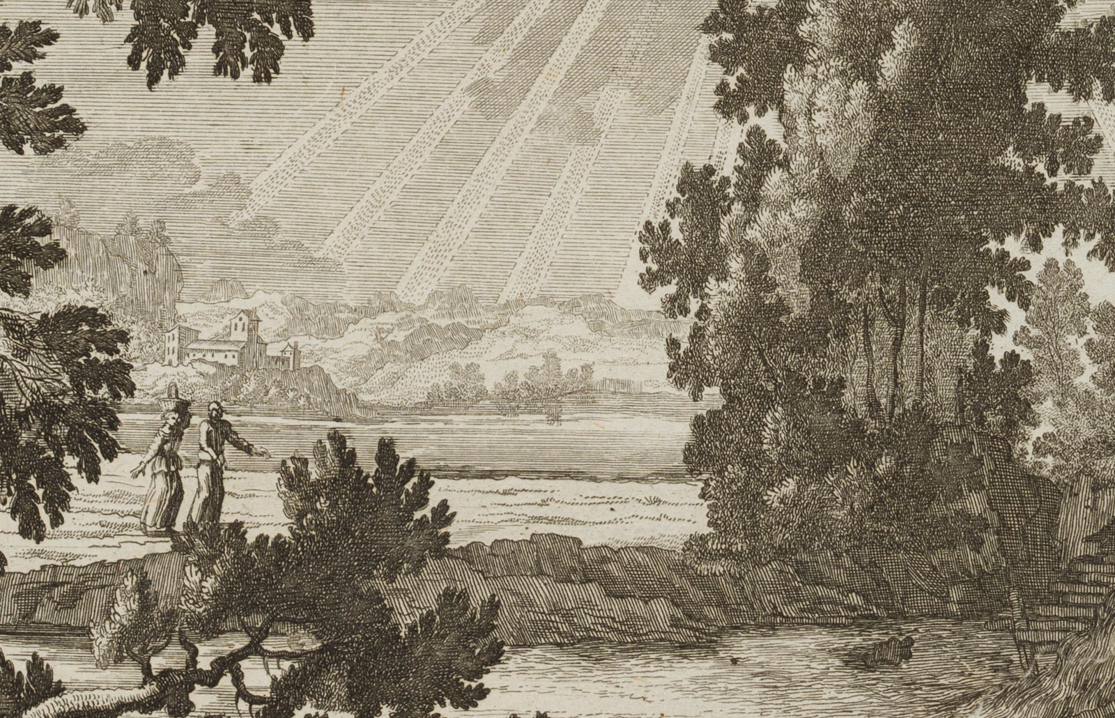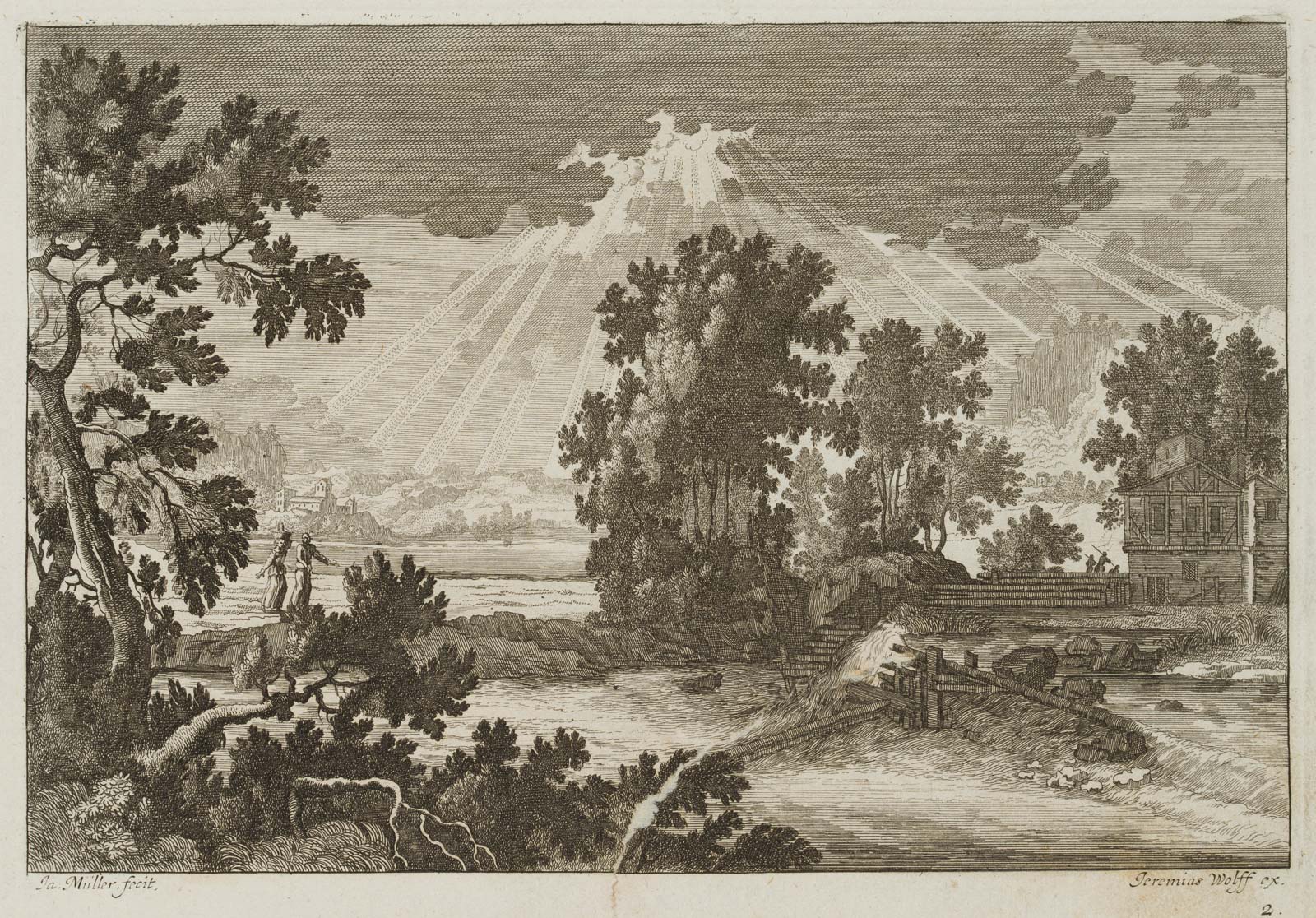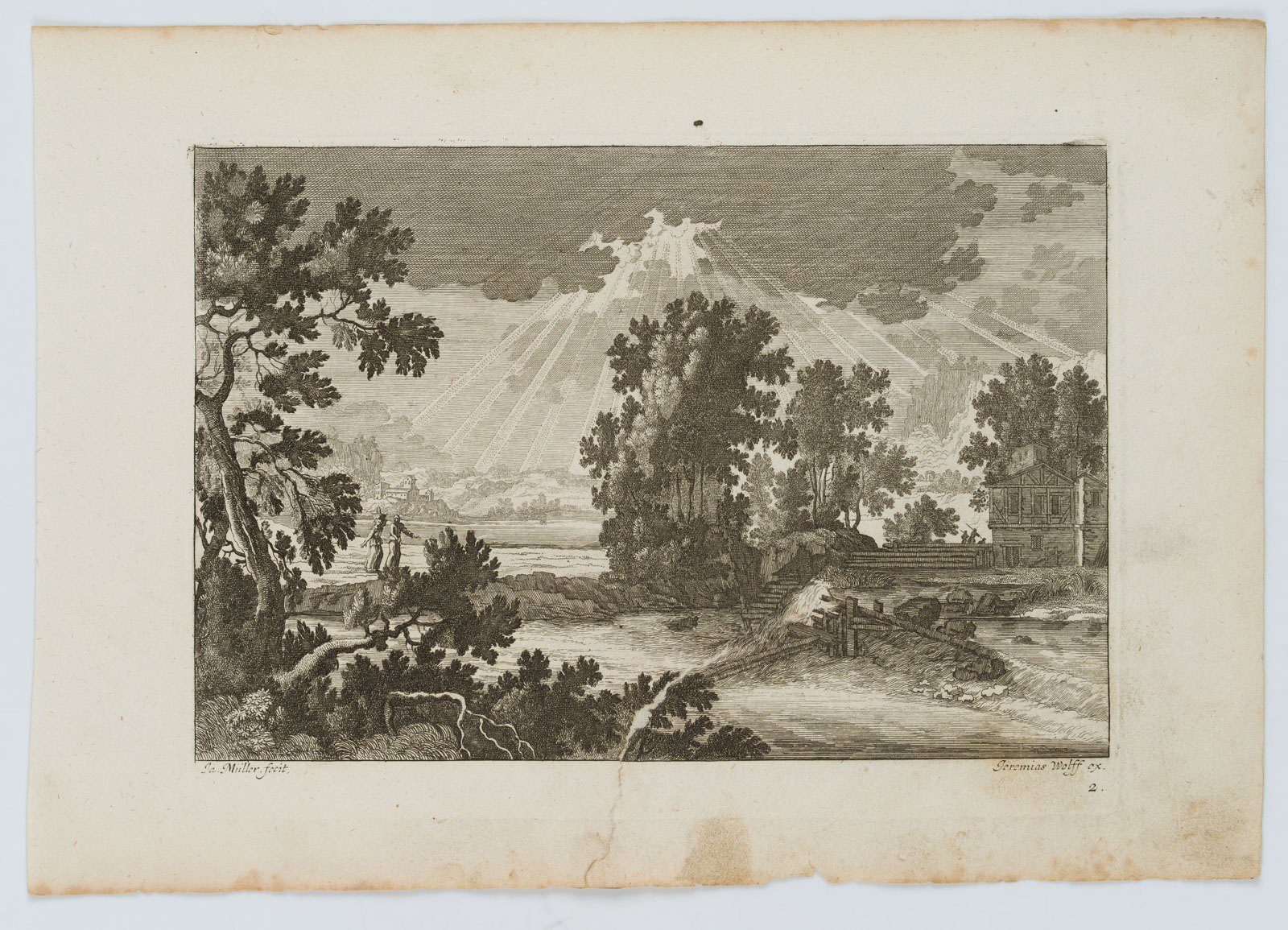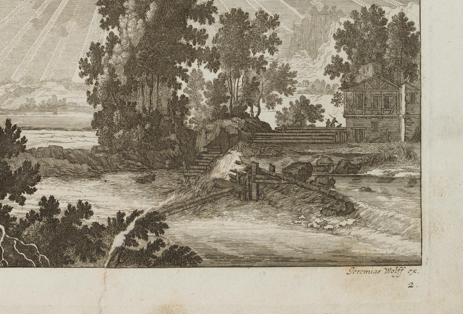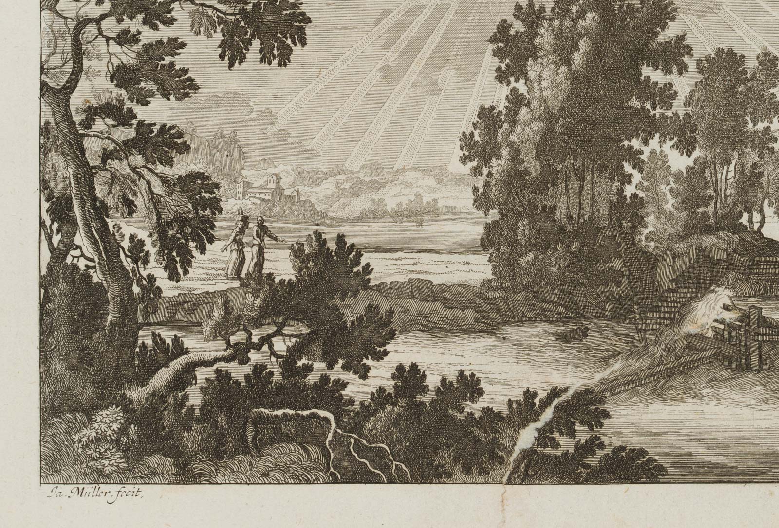 - Bezeichnung: Unten links in der Druckplatte signiert: “Ja. Müller fecit”. Herausgegeben von Jeremias Wolff (um 1663-1724) in Augsburg. Aus einer Serie von Landschaftsdarstellungen.