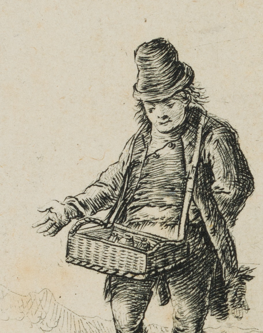 Johann Andreas Benjamin Nothnagel (1729 Book on the forest – 1804 Frankfurt on the Main), Trader with hawker’s tray, 18th century, Etching