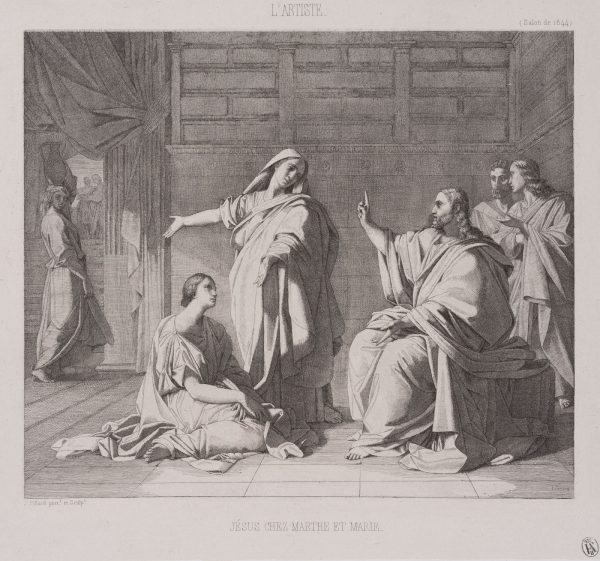 Jacques Pillard (1814 – 1898 ), PILLARD, Jesus chez Marthe et Marie, aus dem ‘L’Artiste’, Salon de 1844, Rad, 1844, Radierung