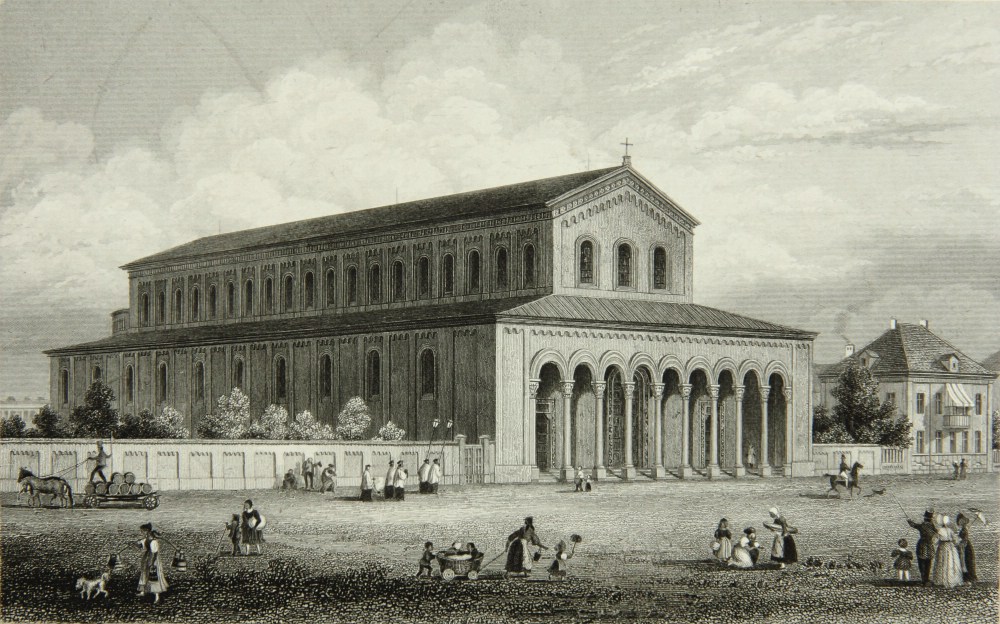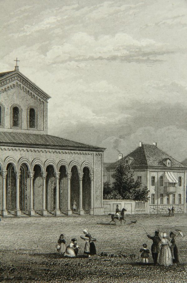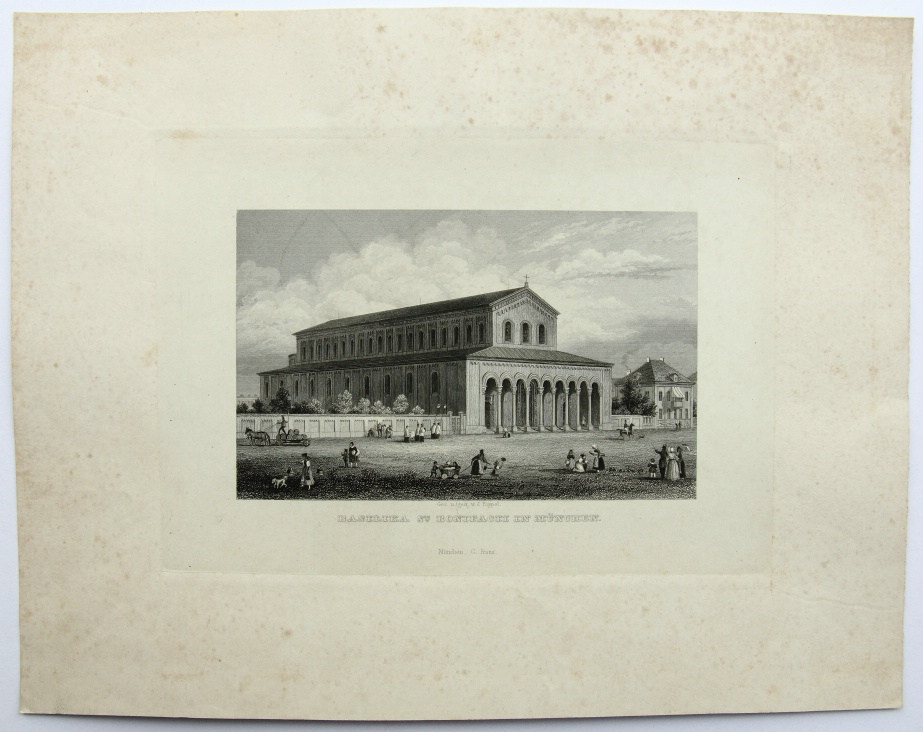 - Description: Johann Gabriel Friedrich POPPEL (1807 Hammer – 1882 Ammerland), Southwest view of the basilica of St. Bonifaz Abbey in Munich, built between 1838 and 1850 by Georg Friedrich Ziebland, steel engraving. Description: Steel engraving on paper. rolled on paper. Signed and titled in the printing plate below the image.