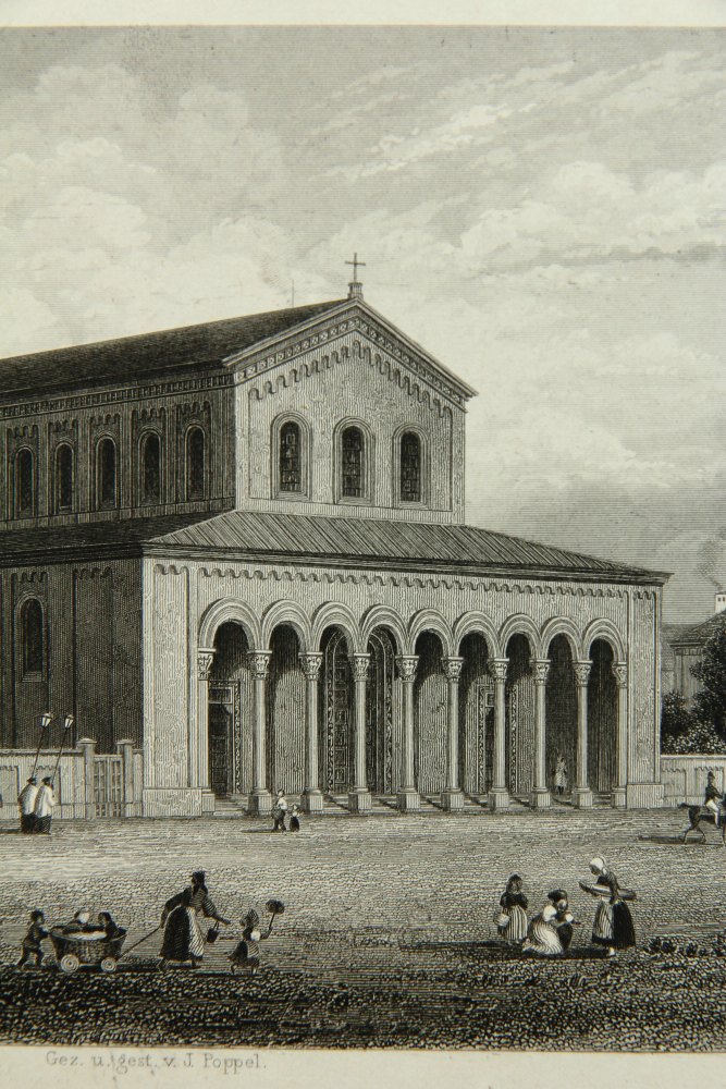 - Beschreibung: Johann Gabriel Friedrich POPPEL (1807 Hammer – 1882 Ammerland), Südwestansicht der Basilika der Abtei St. Bonifaz in München, erbaut zwischen 1838 und 1850 von Georg Friedrich Ziebland, Stahlstich. Beschreibung: Stahlstich auf Papier. auf Papier aufgewalzt. Unterhalb der Darstellung in der Druckplatte signiert und betitelt.
