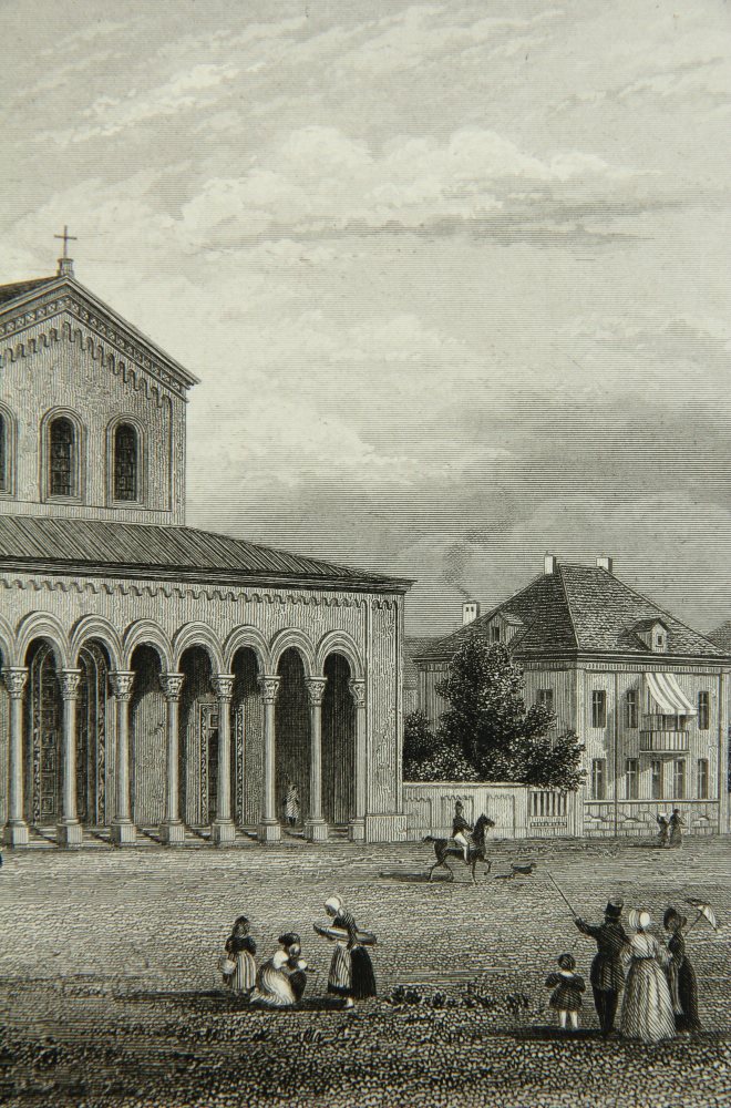 Johann Gabriel Friedrich Poppel (1807 Hammer – 1882 Ammerland), Die Basilika der Abtei St. Bonifaz in München, 19. Jahrhundert, Stahlstich