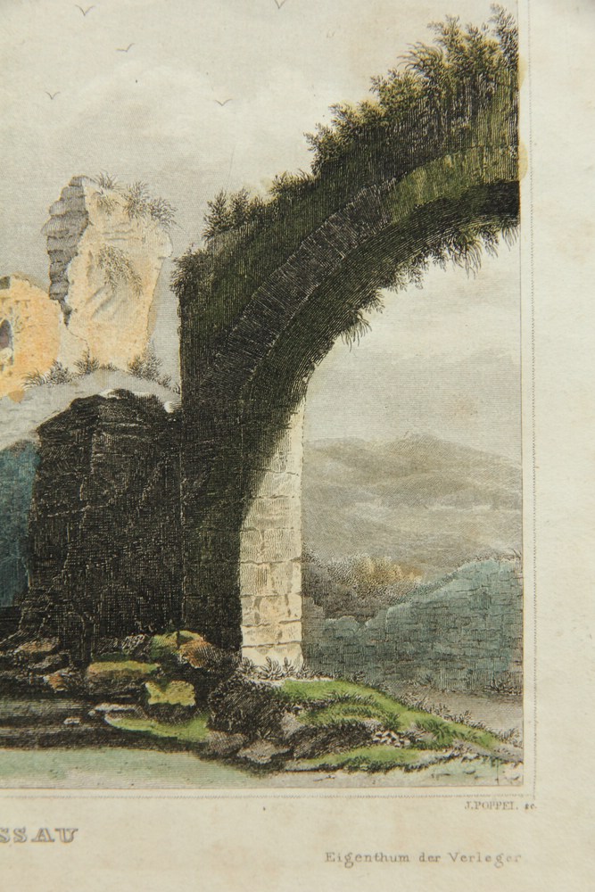Johann Gabriel Friedrich Poppel (1807 Hammer – 1882 Ammerland), Ruin of the ancestral castle Nassau, 19th century, Steel engraving