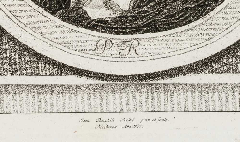 - Inscription: Inscribed with the initials “P.R.” in the lower centre of the printing plate. Signed and dated below: “Jean Theophile Prestel pinx. et sculp. Noriberga Anno 1777”.
