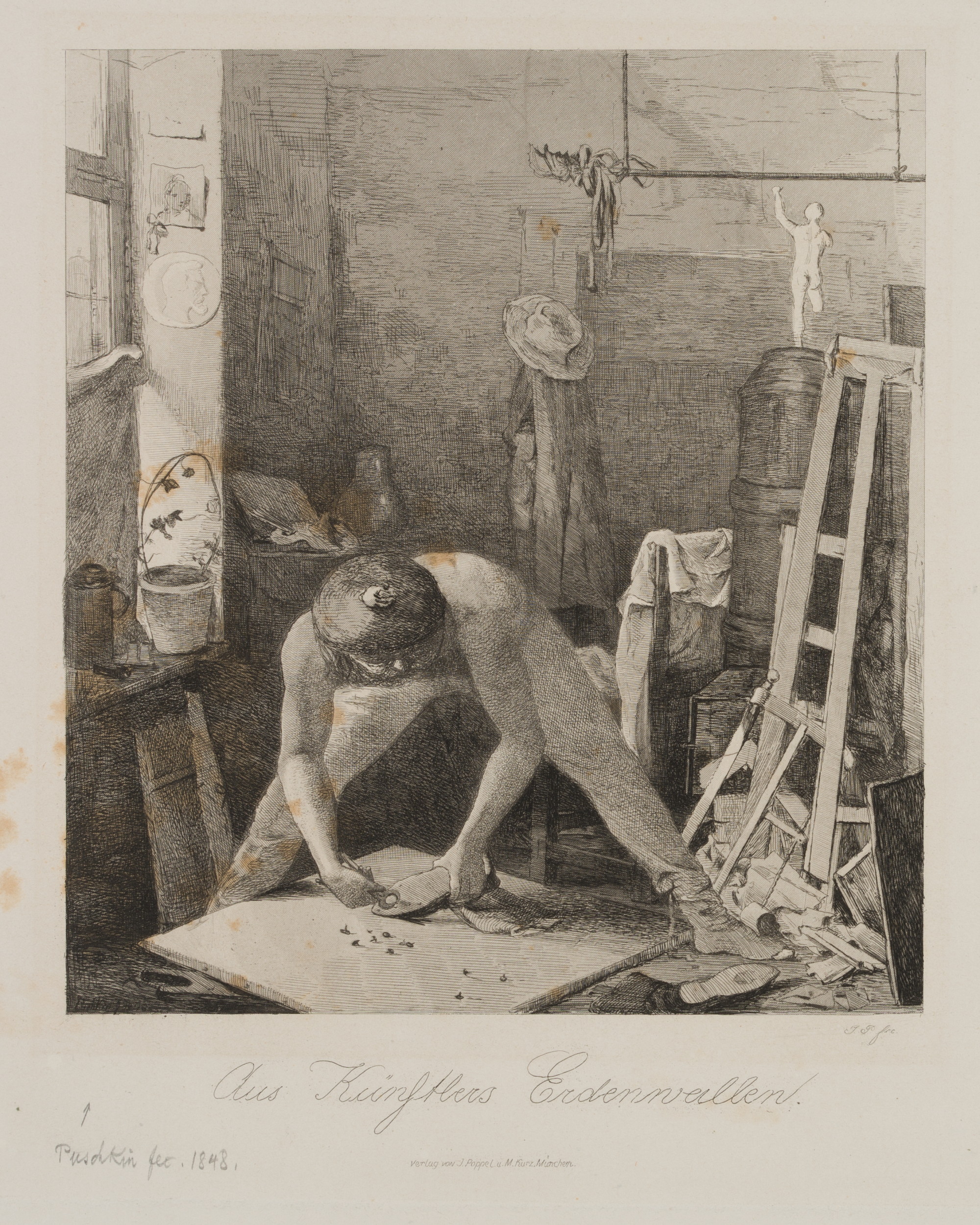 Joseph Puschkin (1827 München – 1905 ebd.), Aus Künstlers Erdenwallen, , Radierung