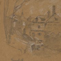 Joseph Puschkin (1827 München – 1905 ebd.), Die Guglgasse. Blick in die Straße. Altmünchen, um 1880, Bleistift