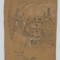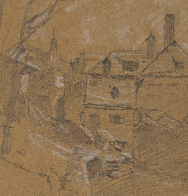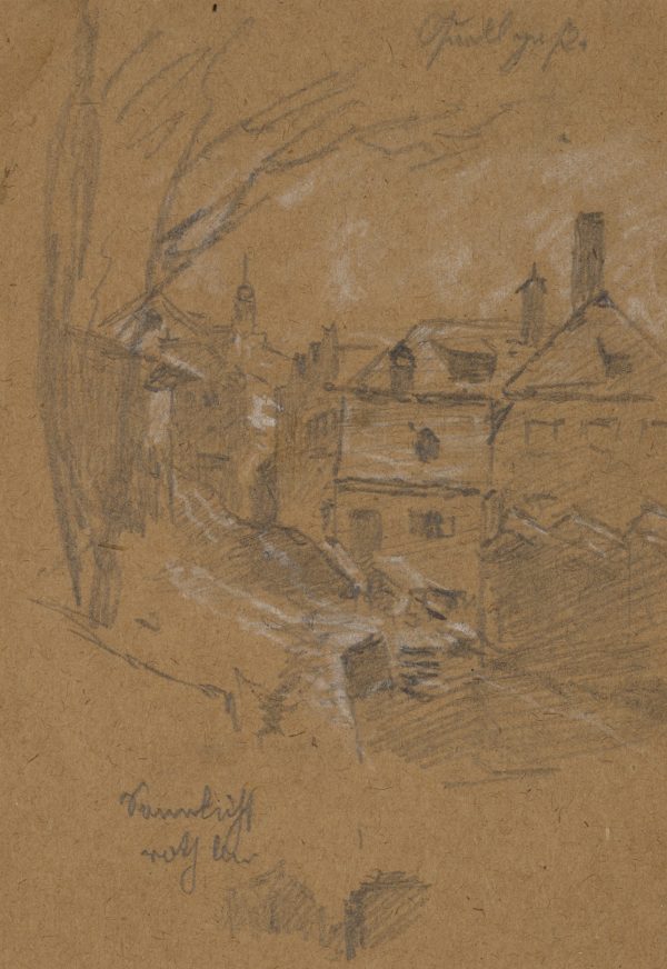Joseph Puschkin (1827 Munich – 1905 ibid.), The Guglgasse View into the street Altmünchen, c. 1880, Pencil
