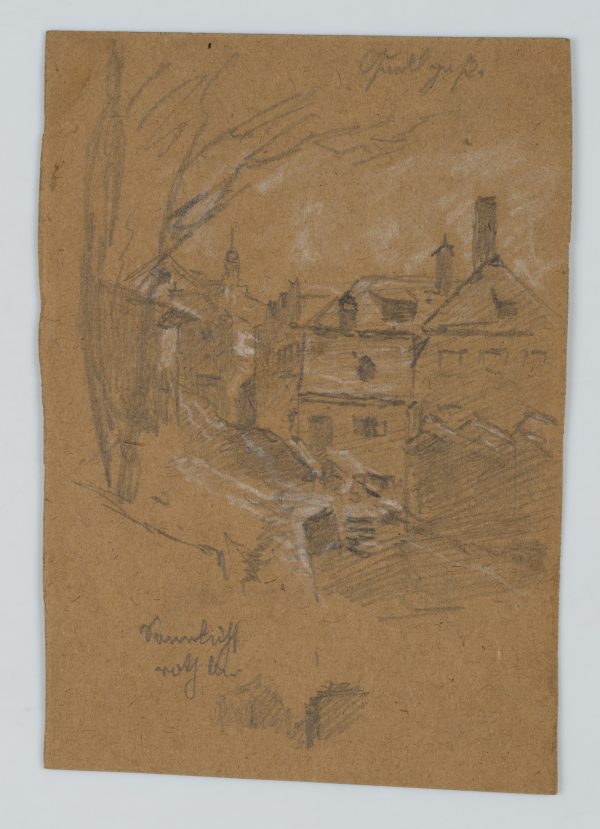 - Inscription: lower left inscribed by the artist’s hand: “Guglgasse”. lower left further inscription: “HEI”. Verso additional inscription: “Leibregiment Kaserne”.