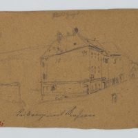 - Schlagworte: Städtebau, Stadtansicht, Straßenzug, Gasse, Guglgasse, Architektur, Skizze, Altmünchen, historisches München, Leibregiment, Kaserne, Stadtbilder, Deutschland, Realismus, 1850-1899