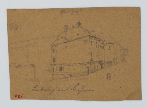 - Bezeichnung: Unten links eigenhändig bezeichnet: “Guglgasse”. Unten links weitere Beschriftungen: “HEI”. Verso zusätzliche Beschriftung: “Leibregiment Kaserne”.