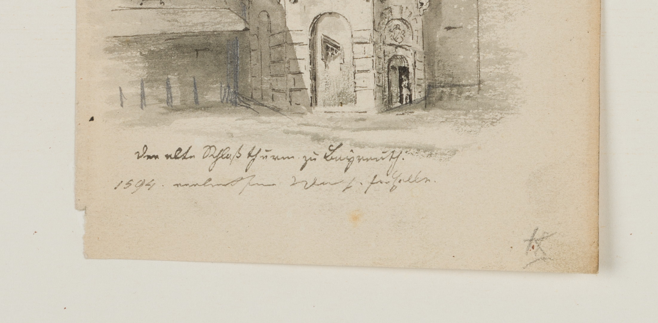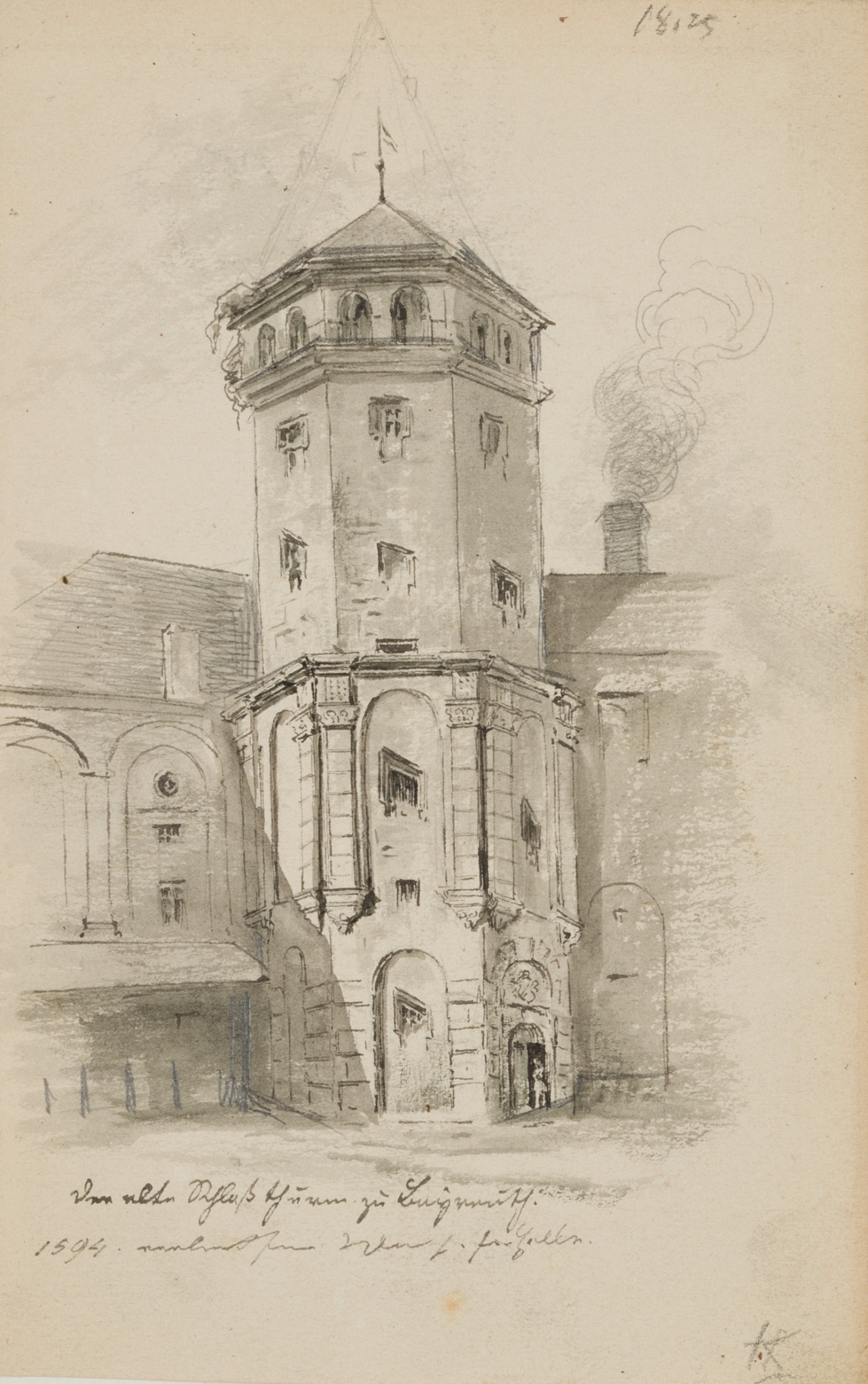 • Inscription: lower left inscribed: “Der alte Schloßthurm zu Bayreuth 1844”.
