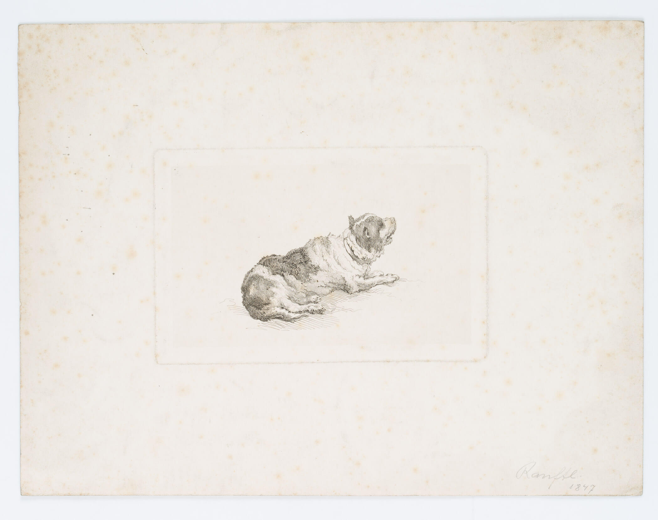 Johann Ranftl (1804 Vienna – 1854 ibid.), Lying dog, 1847, Etching