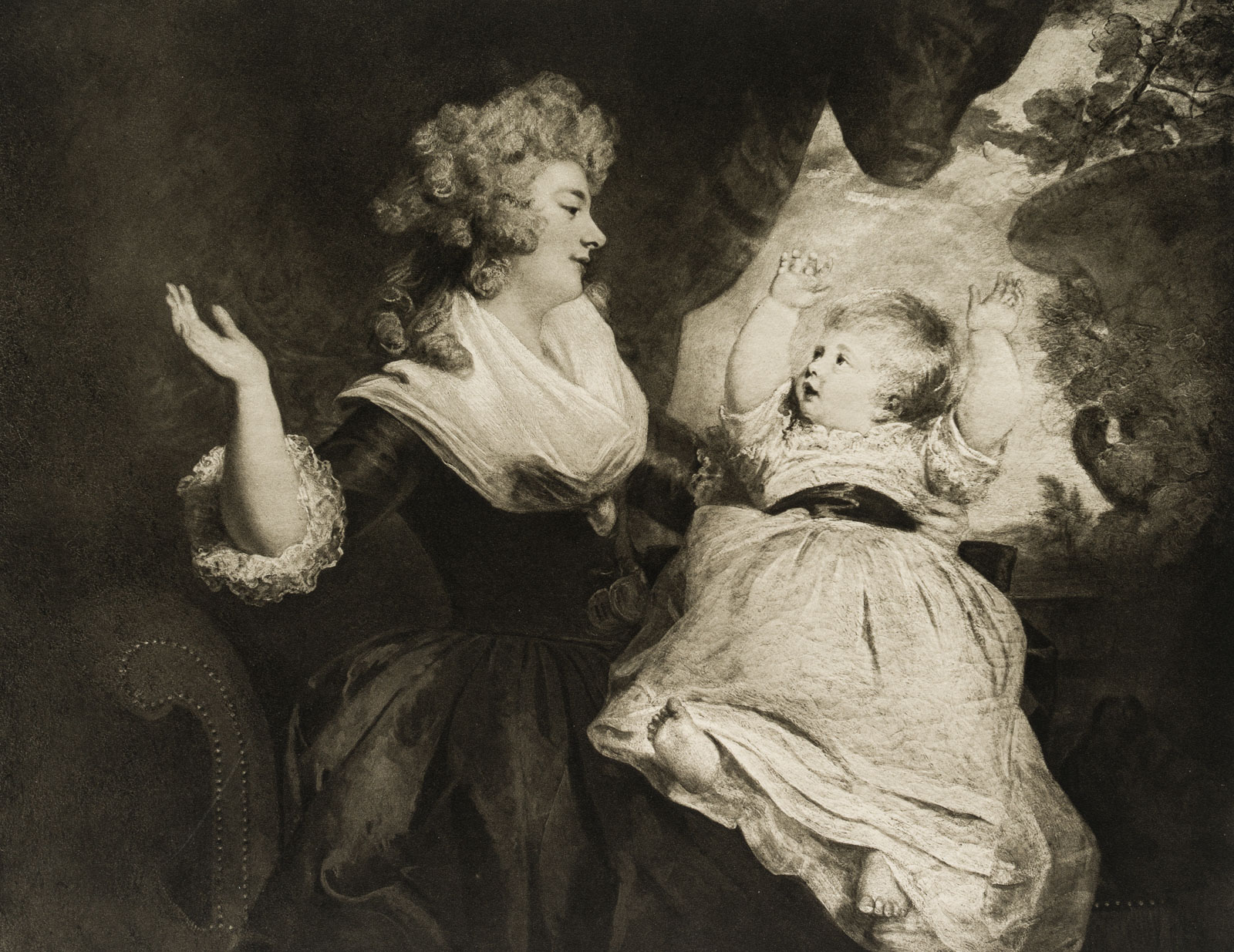 Joshua Reynolds (1723 Plymouth – 1792 London), Portrait of Georgiana Cavendish, Duchess of Devonshire, with daughter, (1786 ), Chatsworth House near Derbyshire, England, from a catalogue of masterpieces, 1905, Photogravure