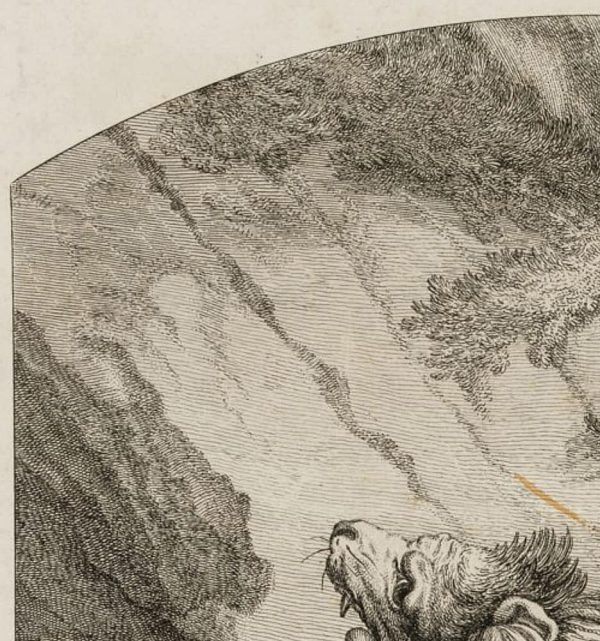Johann Elias Ridinger (1698 Ulm – 1767 Augsburg), The lurking lion, c. 1760, Etching