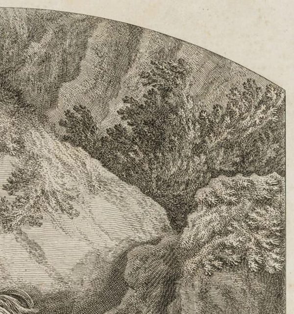 - Zustand: Guter Zustand. Das Blatt ist altersbedingt verfärbt und stellenweise verschmutzt. Blass stockfleckig. Mittig befindet sich ein blassbrauner Strich. Auf dem Blattrand sind stellenweise schwache Bereibungen zu sehen. Links unten befindet sich ein restaurierter Randeinriss. Oben links ist ein kleines Loch im Papier festzustellen. Die Darstellung macht einen insgesamt sehr guten Eindruck.