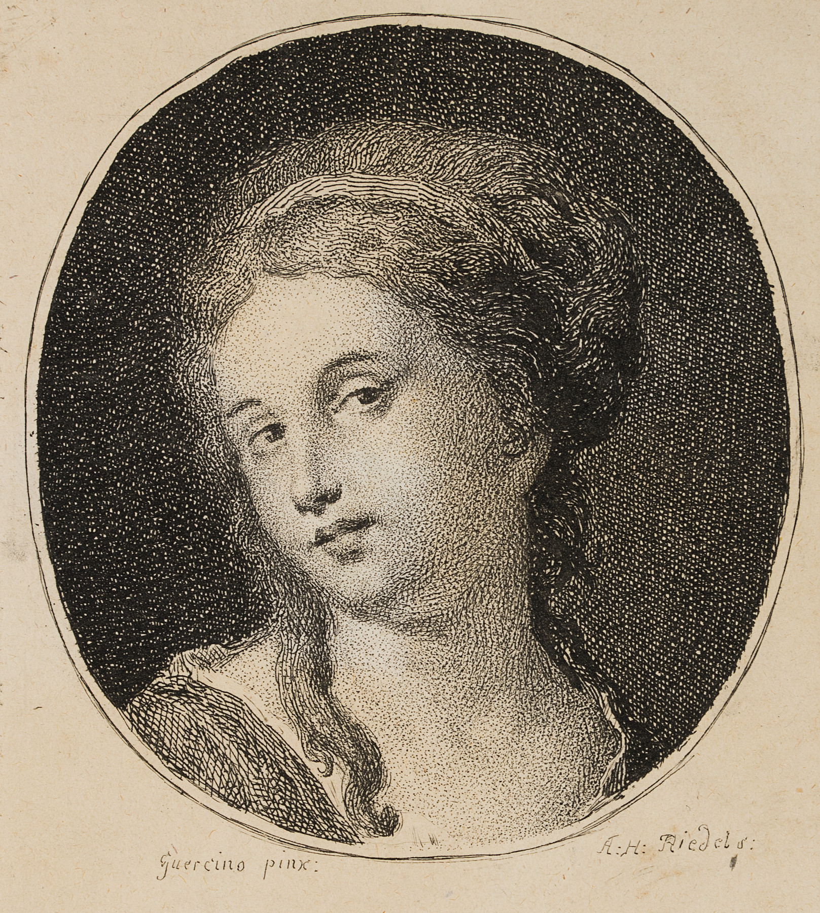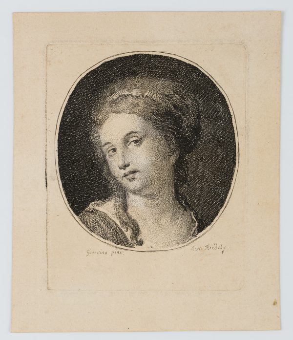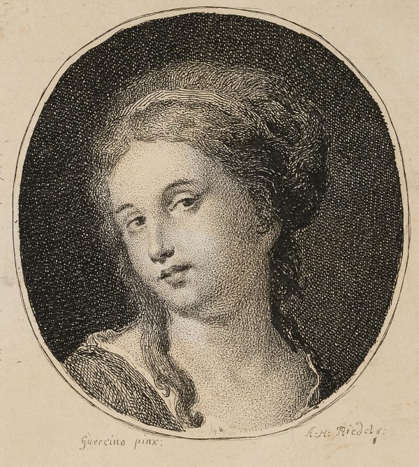 Johann Anton Riedel (1736 Falkenau – 1816 Dresden), after Guercino, head of a young woman, c. 1755, Etching