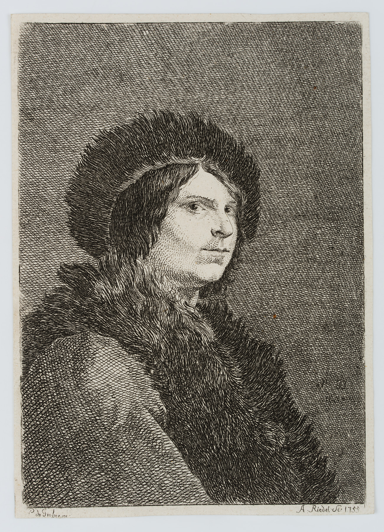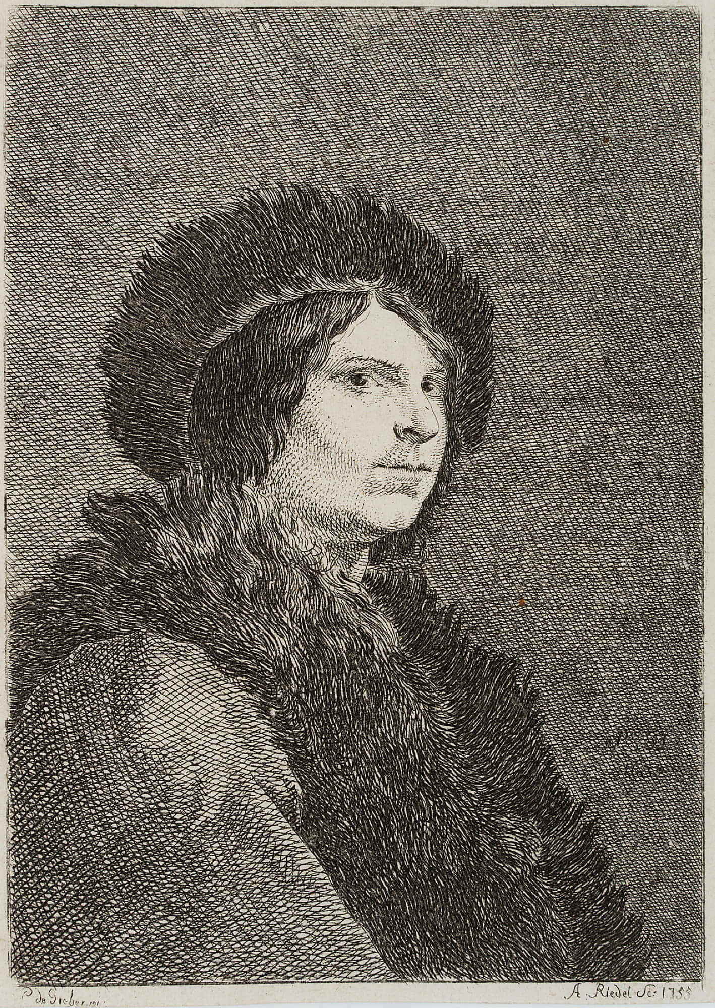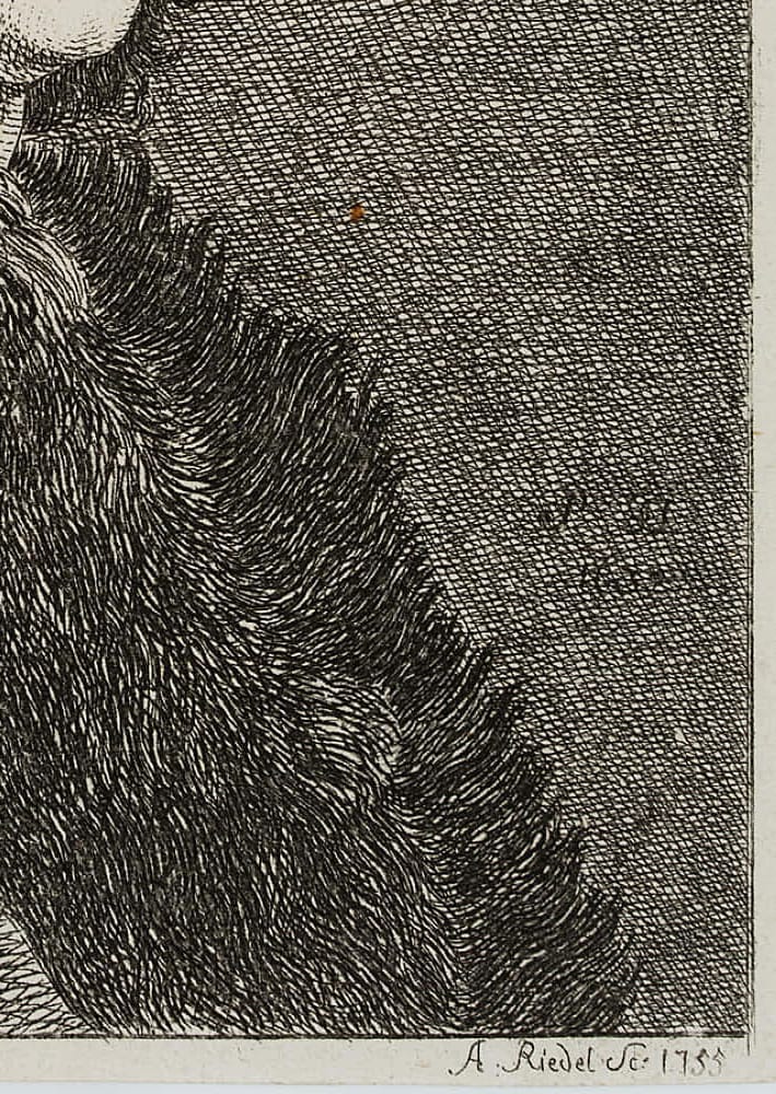 Johann Anton Riedel (1736 Falkenau – 1816 Dresden), after Pieter de Greber, Lady in fur, 1755, Etching