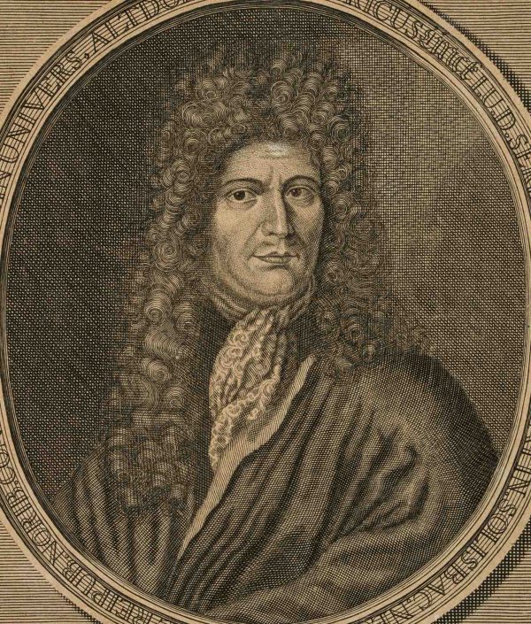 Johann Christoph Sartorius (*um 1680 Nürnberg), Brustporträt des Apothekers und Naturforschers Johann Heinrich Linck d. Ä. (1674 Leipzig – 1734 ebenda) in einem beschrifteten ovalen Rahmen mit Sockel, 18. Jahrhundert, Stahlstich
