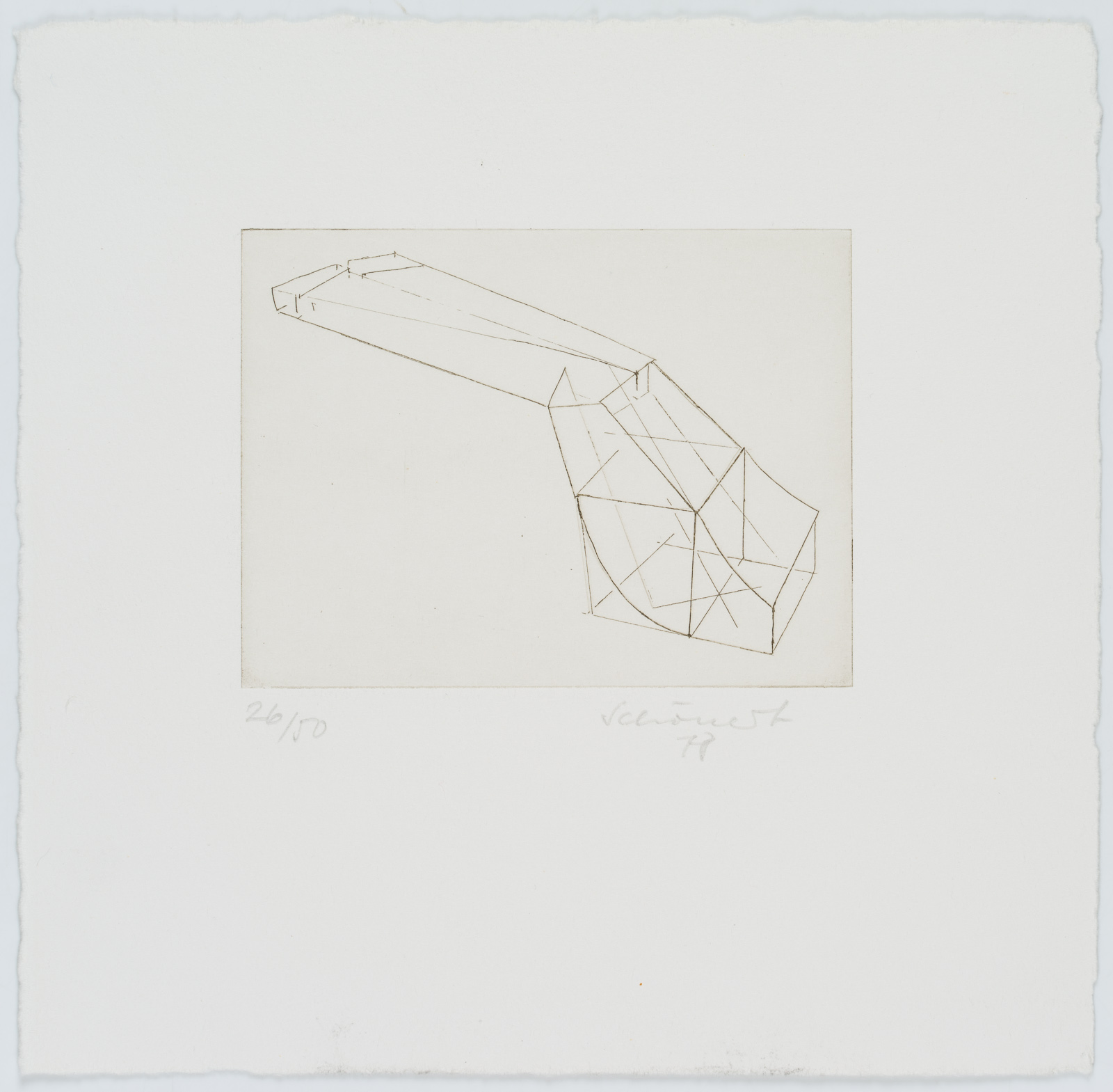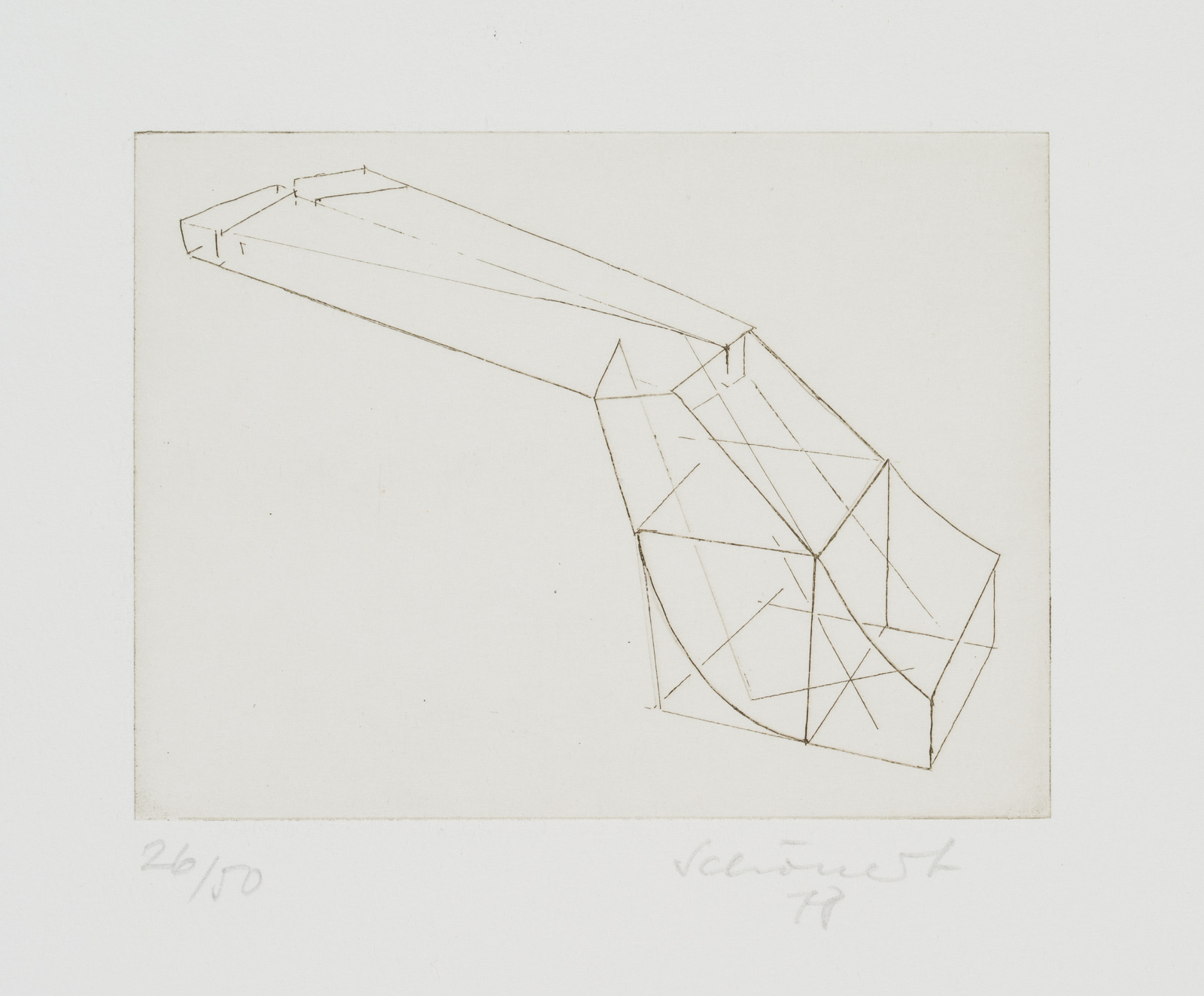 Johannes Schönert (*1936 Dresden), Abstrakte Formation im Raum, 1978, Kaltnadelradierung