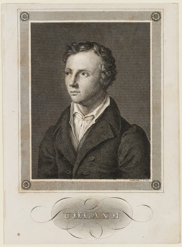 - Description: Half-length portrait of the poet, politician, lawyer and literary scholar Ludwig Uhland in three-quarter profile to the left with closed jacket in a rectangular frame. The depiction follows a youthful portrait of Uhland by Gottlob Wilhelm Morff (oil on canvas, c. 1818).