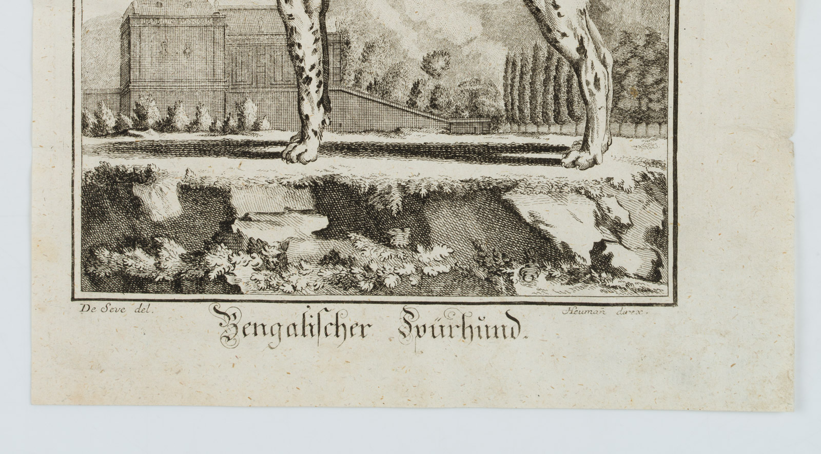Jacques de Sève (1742 – 1788 ), Bengalischer Spürhund, Dalmatiner, 18. Jahrhundert, Kupferstich