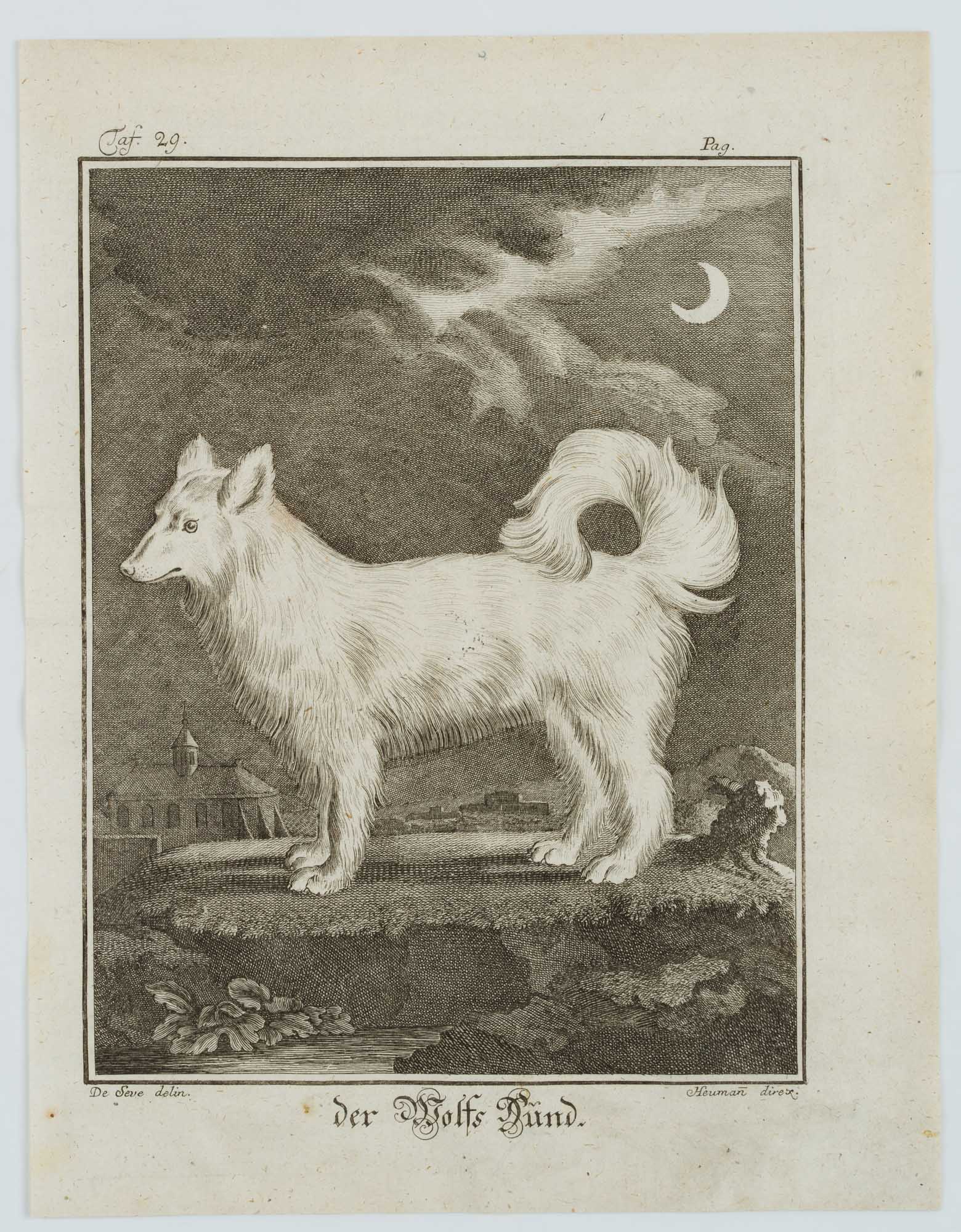 - Schlagworte: Wolfshund, Rassenhund, Hund, Hundeportrait, Hundedarstellung, Hunderasse, Naturkunde, Naturkundeenzyklopädie, Zoologie, Enzyklopädie, Tiere, Natur, Deutschland, Hund, Realismus, 1700-1749