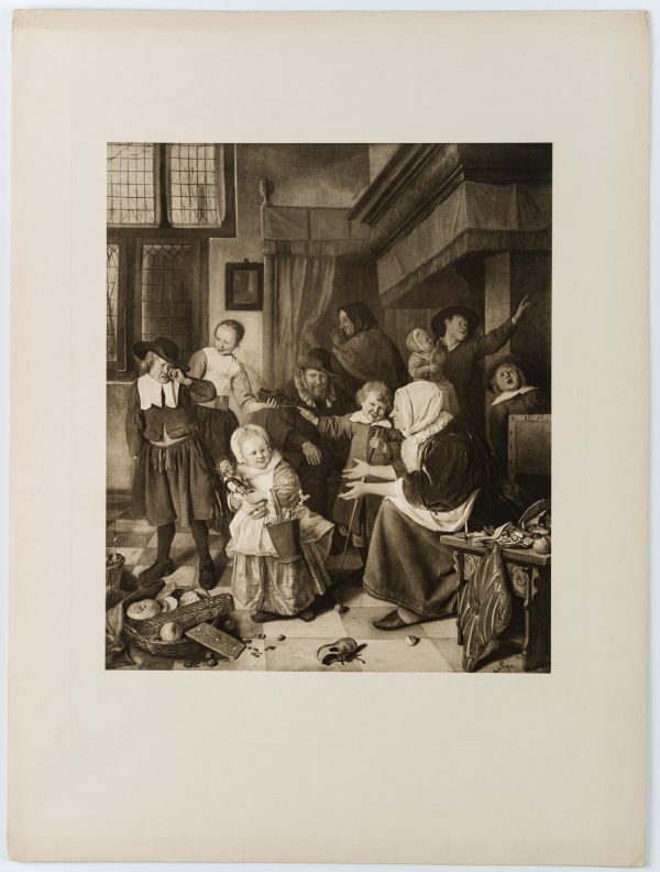 - Description: From the catalogue: Masterpieces of Painting. Old Masters. Reproductions in Photogravure. With a preface and accompanying text by Wilhelm Bode and Fritz Knapp, Berlin 1905. Please note further offers from the Masterpieces catalogue in our online shop. The photogravure is accompanied by the corresponding picture text by Wilhelm Bode on an additional sheet. With the artist’s signature “Steen” at the bottom right of the picture.