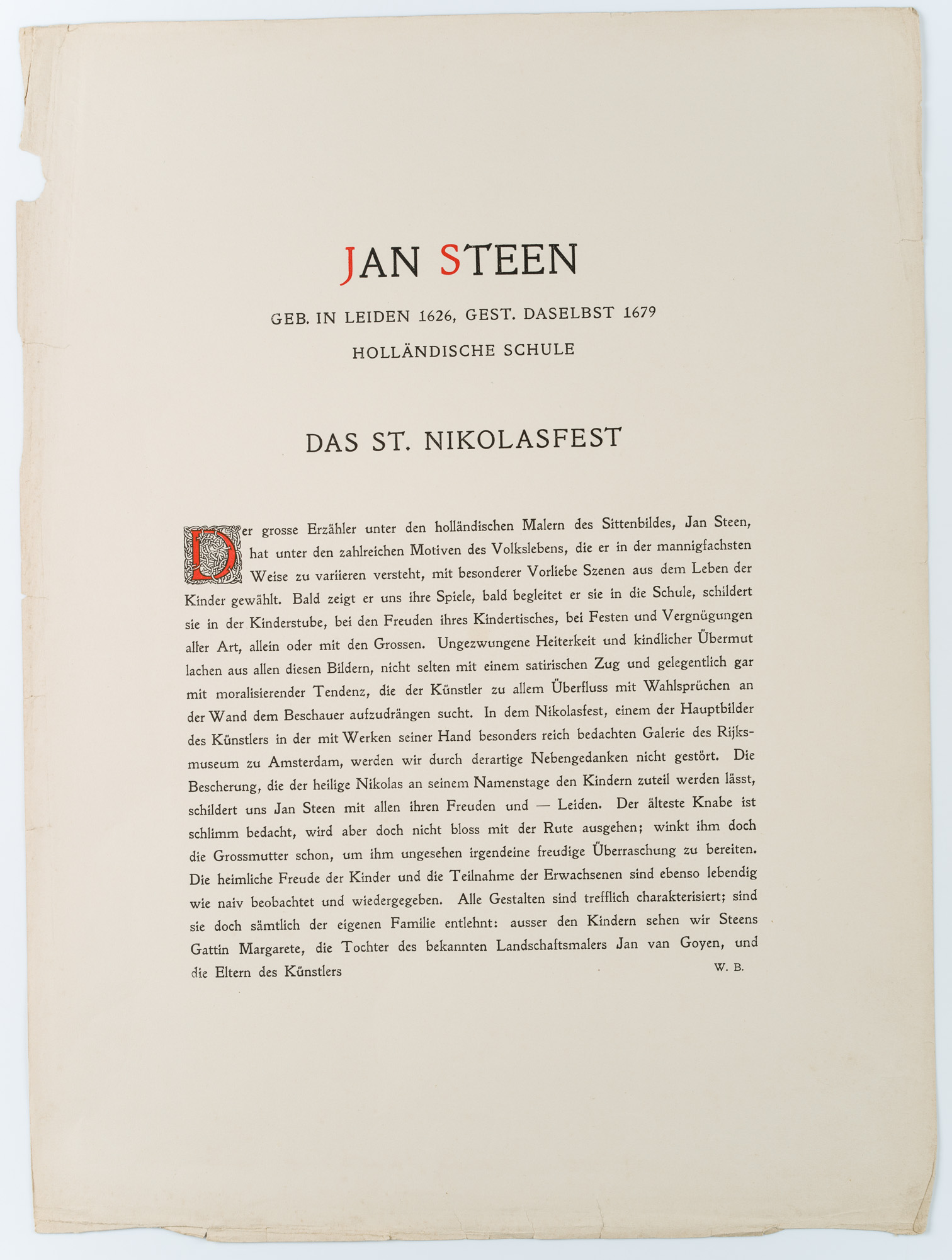 - Beschreibung: Aus dem Katalog: Meisterwerke der Malerei. Alte Meister. Reproductionen in Photogravure. Mit einem Vorwort und begleitendem Text von Wilhelm Bode und Fritz Knapp, Berlin 1905. Beachten Sie dazu weitere Angebote aus dem Meisterwerke-Katalog in unserem Onlineshop. Der Photogravure liegt jeweils der entsprechende Bildtext von Wilhelm Bode auf einem zusätzlichen Blatt bei. Mit der Signatur des Künstlers “Steen” unten rechts im Bild.