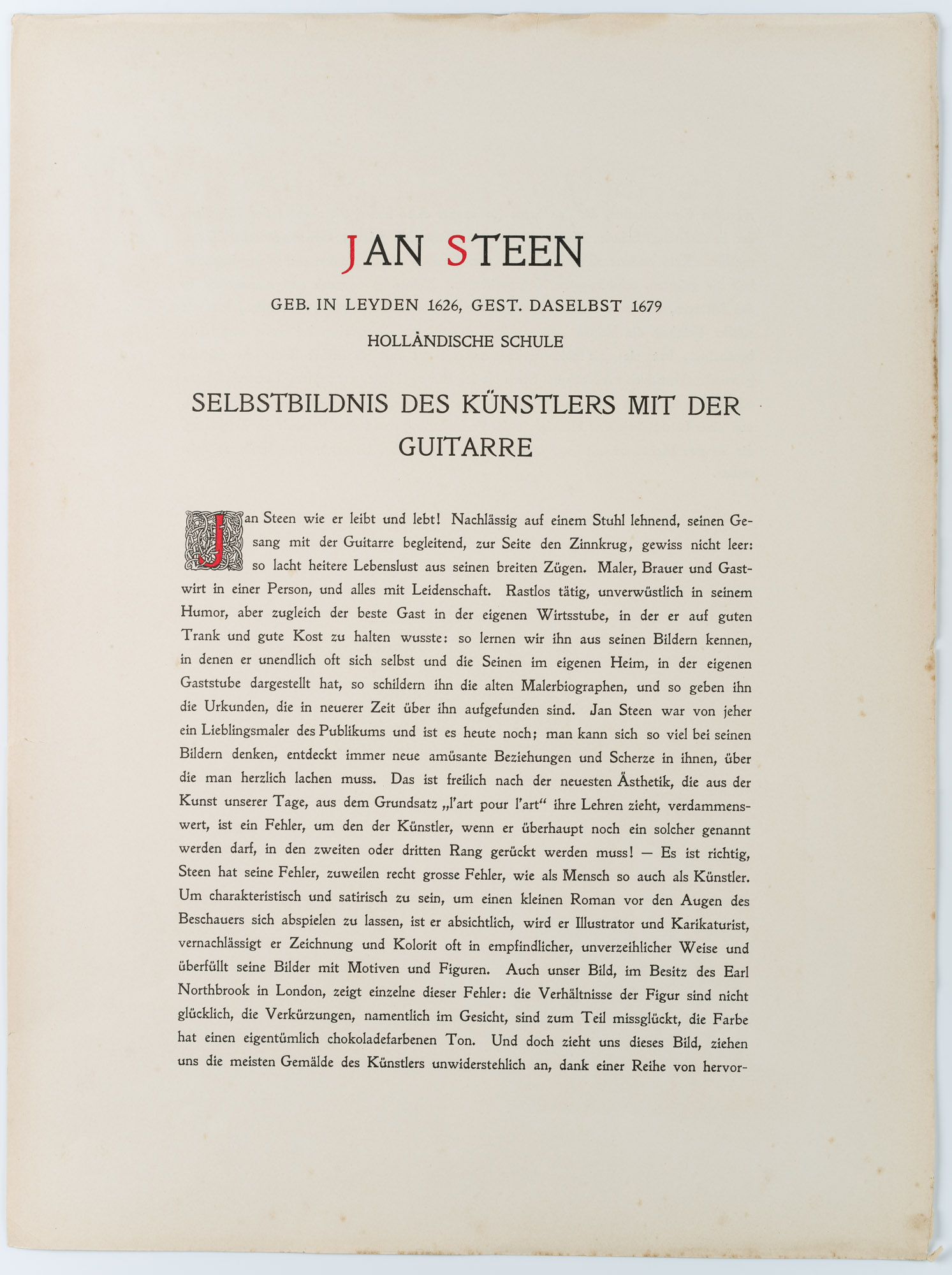 - Beschreibung: Aus dem Katalog: Meisterwerke der Malerei. Alte Meister. Reproductionen in Photogravure. Mit einem Vorwort und begleitendem Text von Wilhelm Bode und Fritz Knapp, Berlin 1905. Beachten Sie dazu weitere Angebote aus dem Meisterwerke-Katalog in unserem Onlineshop. Der Photogravure liegt jeweils der entsprechende Bildtext von Wilhelm Bode auf einem zusätzlichen Blatt bei.