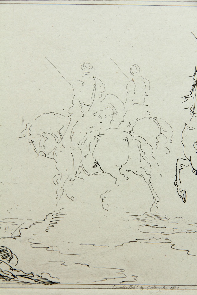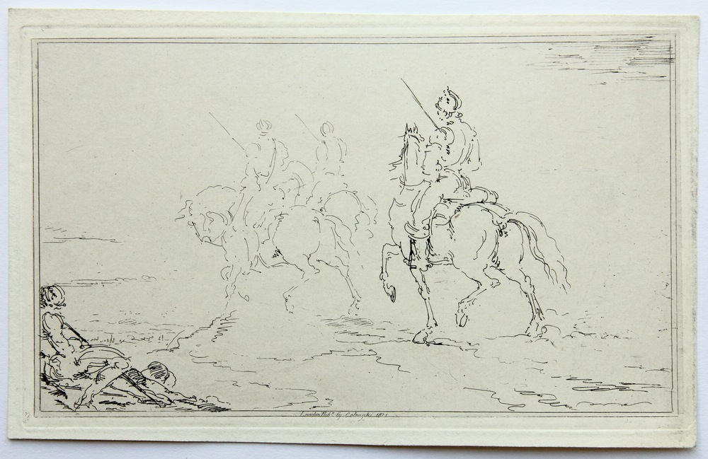 James S. Stewart (1791 Edinburgh – 1863 Cape Town), Three armed horsemen go into battle, 19th century, Etching
