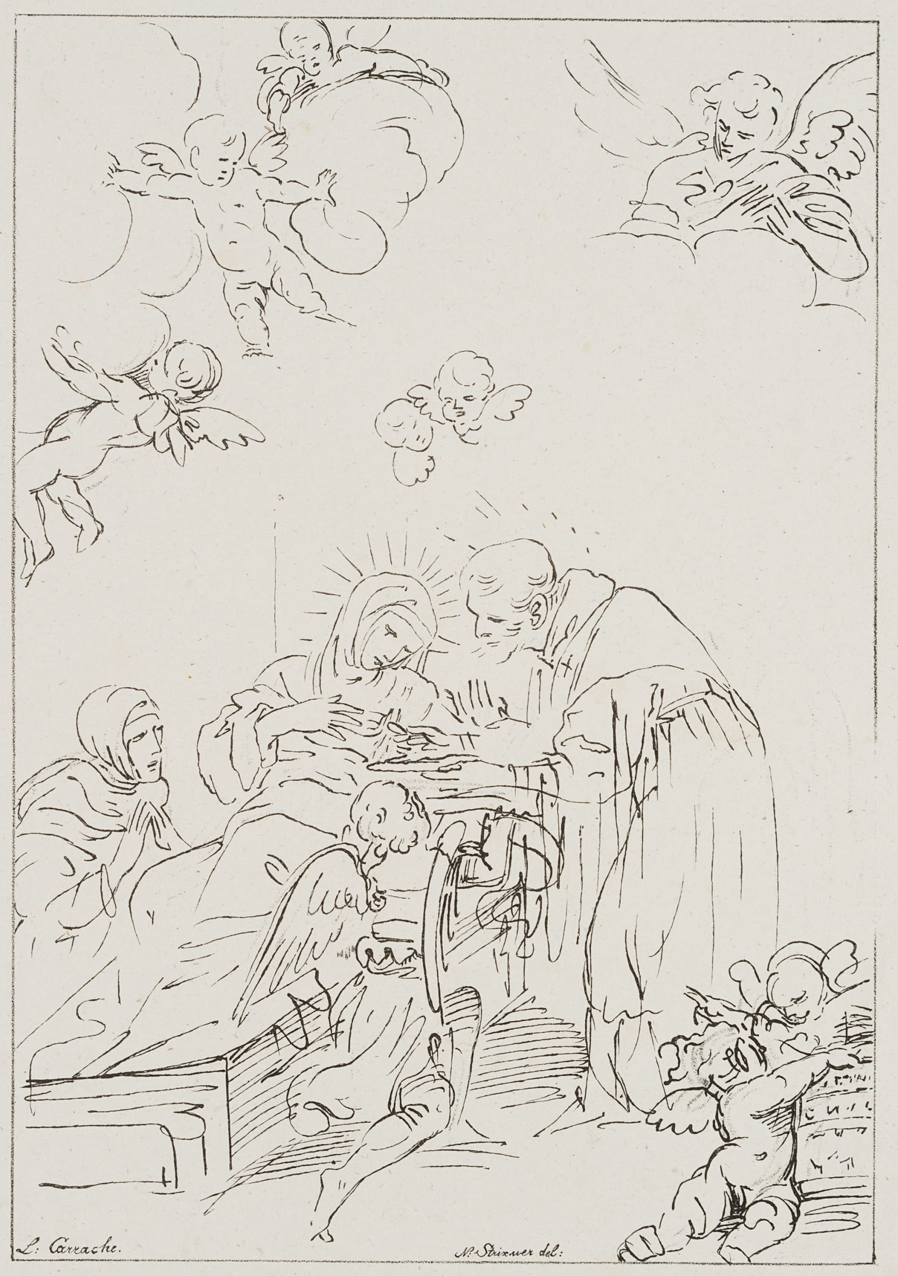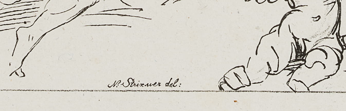 • Inscription: Signed in the stone below the depiction: “L: Carrache | N: Strixner del:”.