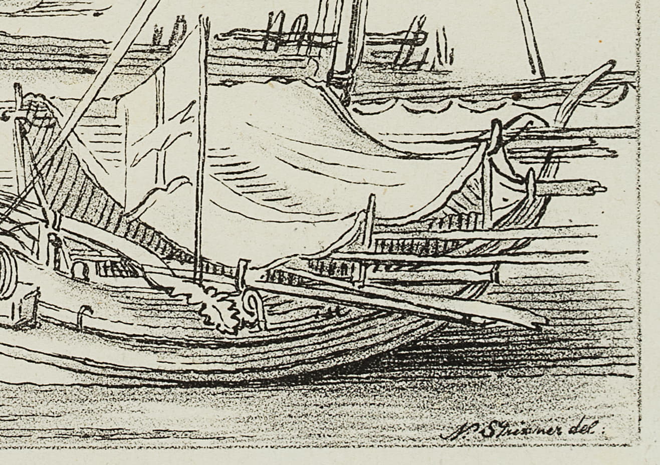 Johann Nepomuk Franz Xaver Strixner (1782 Altötting – 1855 München), Italienische Hafenstadt mit Fischerbooten, um 1808, Lithographie