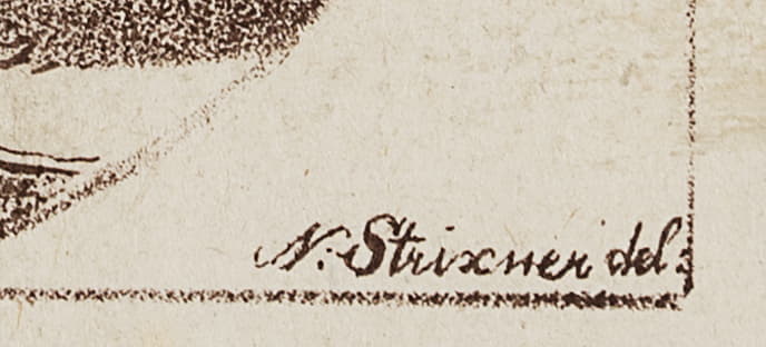 Johann Nepomuk Strixner war ein deutscher Zeichner und Druckgraphiker, der sich besonders durch die druckgraphische Reproduktion alter Handzeichnungen einen Namen gemacht hat. Um 1808 arbeitete er zusammen mit dem Erfinder der Lithographie, Aloys Senefelder, an der Herausgabe einer Serie von lithographischen Reproduktionen nach Albrecht Dürer. 1809 immatrikulierte er an der Akademie zu München, an der er die zuvor bereits erlernten handwerklichen Techniken des Kupferstiches und der Lithographie durch intensive Studien vertiefte. Besonders interessierten ihn die Werke der Alten Meister. Zwischen 1808 und 1815 gab er gemeinsam mit Johann Nepomuk Strixner eine umfangreiche Folge von Lithographien nach Altmeisterzeichnungen heraus. Dieses vielseitige Werk hebt das ganze Können der beiden Künstler hervor, die mit einfühlsamem Blick die Zeichnungen auf den Stein kopierten und in ihren Reproduktionen einen guten Eindruck des originalen Werkes vermitteln. Charakteristisch ist vielen Blättern die Grundlage einer dezent farbigen Tonplatte mit Auskratzungen, wodurch vermutlich Weißhöhungen und unterschiedliche Papierfarben der Originale imitiert werden sollen. Piloty und Strixner nutzten die Technik der Lithographie in allen Facetten und bemühten sich stets, ihren Nachdrucken die gleiche Feinheit und Tiefe zu verleihen, die die Handzeichnungen der Alten Meister auszeichnen.