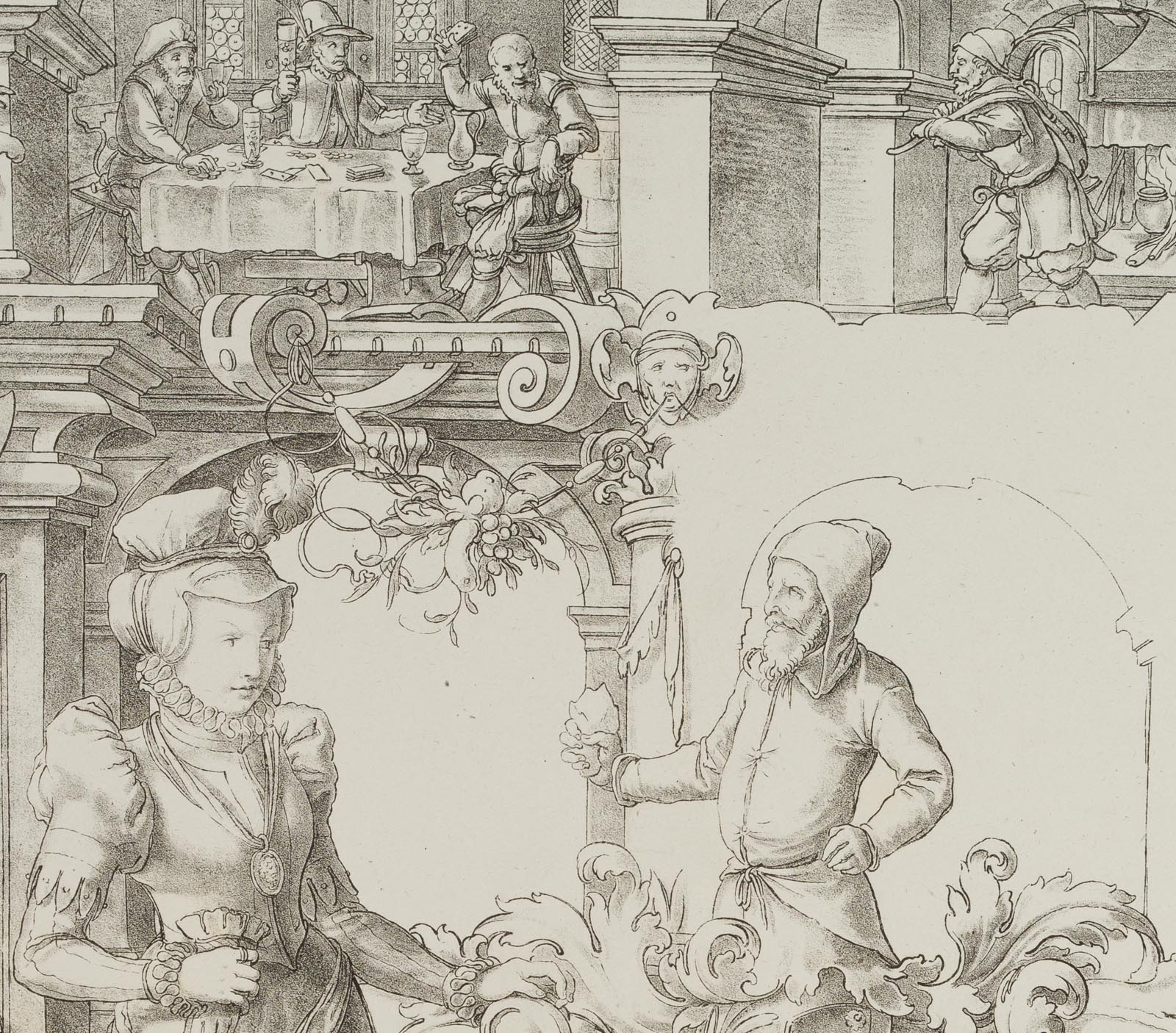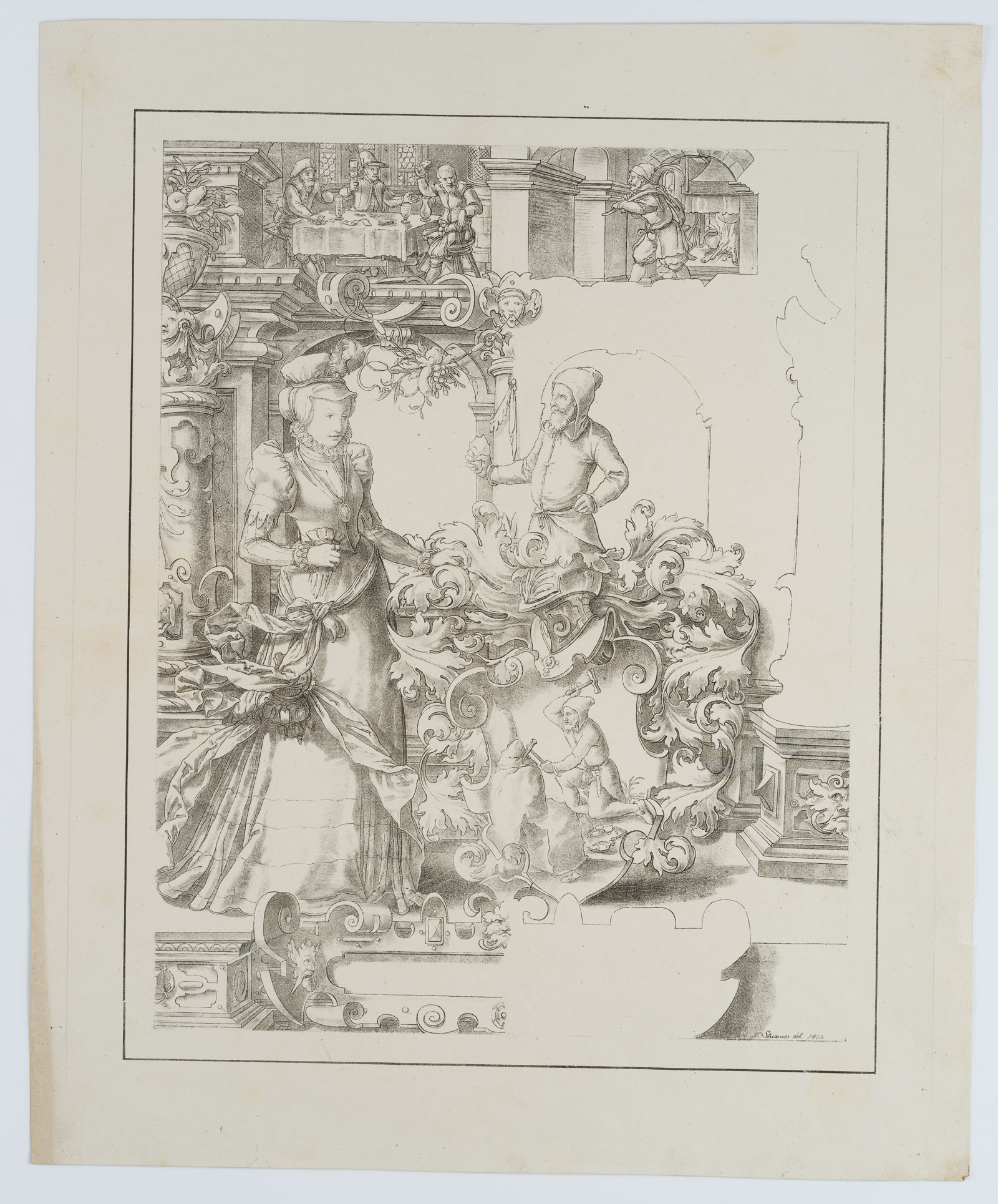 - Inscription: Signed and dated at lower right in the image “N. Strixner del. 1813. Strixner learned engraving with Dorner in 1799. Employed as draughtsman 1803 at the electoral gallery in Munich. From 1806 he tried lithography and from 1810 he published the Oeuvres Lithographiques. From 1820 in Stuttgart.